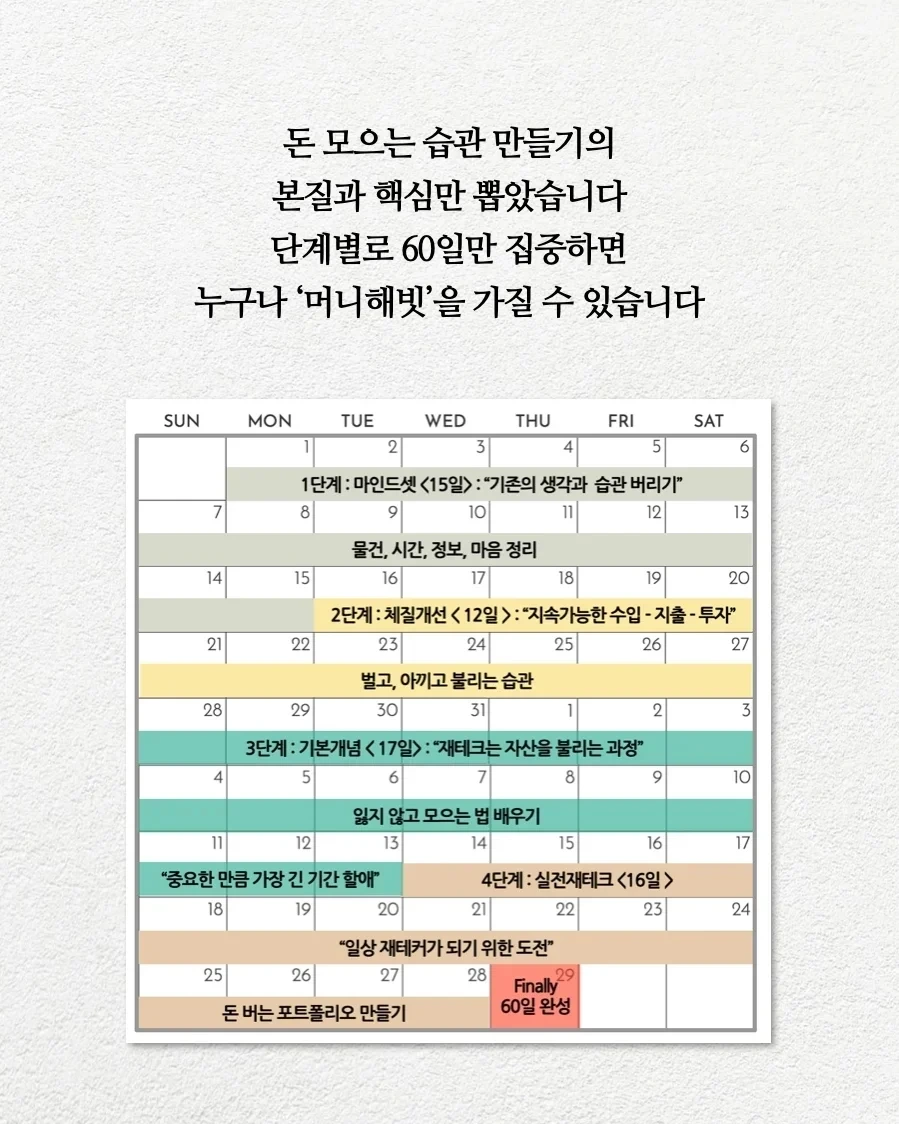 머니해빗 1기는 과감하게 1월 1일부터 평일, 주말 모두 진행하여 2월 29일까지 60일 진행합니다!