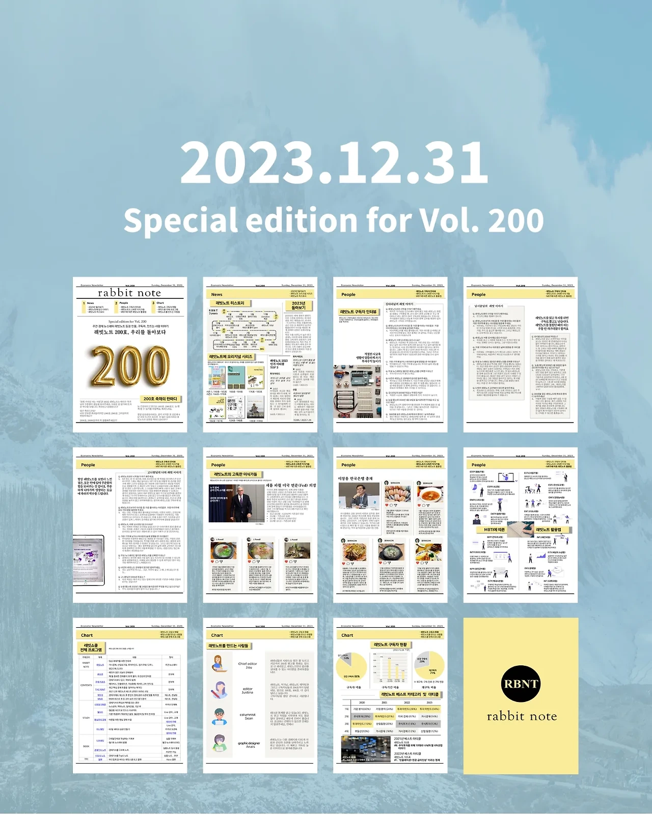 이번 주 일요일 밤은 래빗노트 본편은 휴재이고요. 대신 200호 특집 스페셜 레터가 나갑니다. 1년에 공식 휴재가 2번(추석,연말)을 제외하면 50주씩 4년을 매주 발행하고 있는 성실한(?) 래빗노트입니다. 여러분들의 사랑 으로 여기까지 왔어요. 감사의 마음으로 준비한 콘텐츠이니 재미있게 읽어주세요.