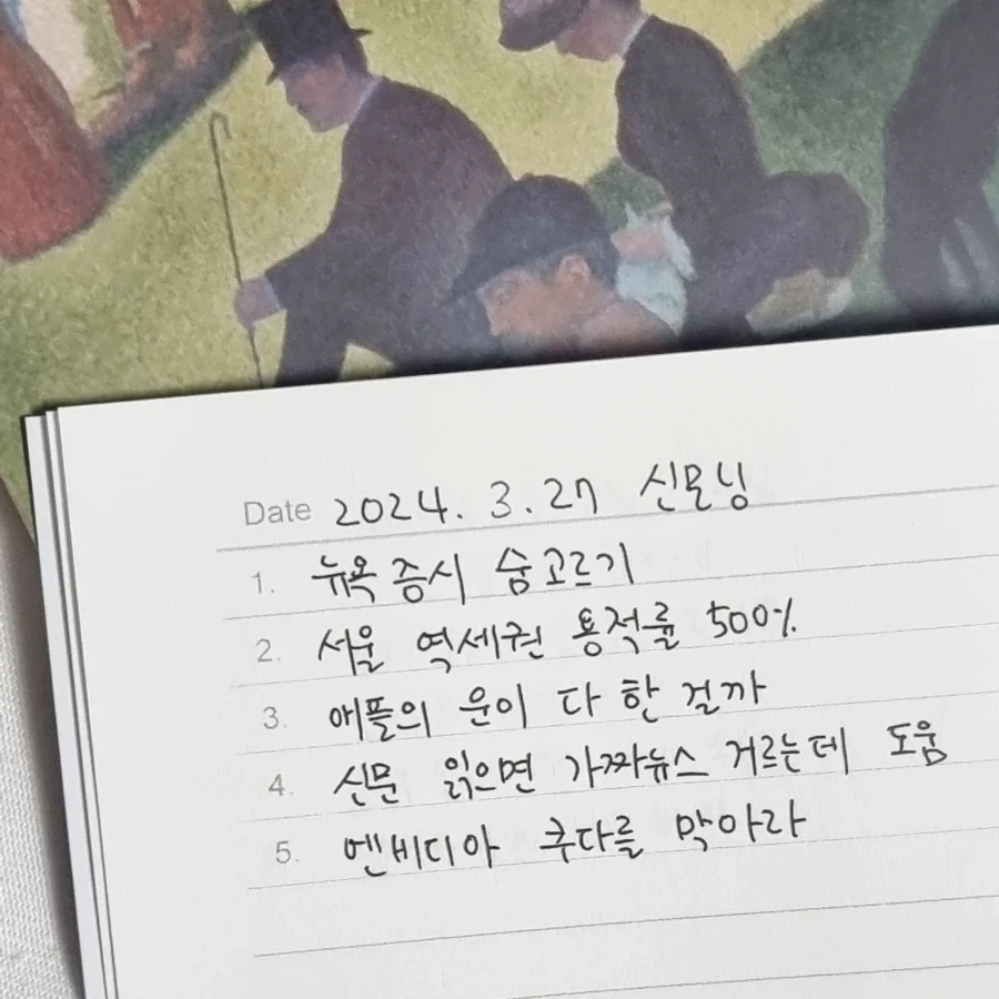 간밤에 뉴욕 증시는 3대 증시 모두 하락했다. 앞서 세 지수 모두 지난 21일 사상 최고치로 마감했기 때문에 29일 발표 예정인 미국 2월 개인소비지출(PCE) 가격지수를 앞두고 관망세에 접어들었다고 보고 있다. 연준(Fed) 파월 의장도 인플레이션이 목표치인 2%를 향해 하락하는 추세라고 말했기 때문에 PCE 2월 결과에 의해 연준(Fed)의 통화정책이 크게 변할 것 같지는 않다.
