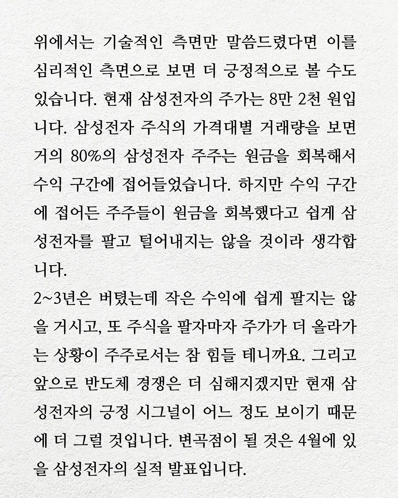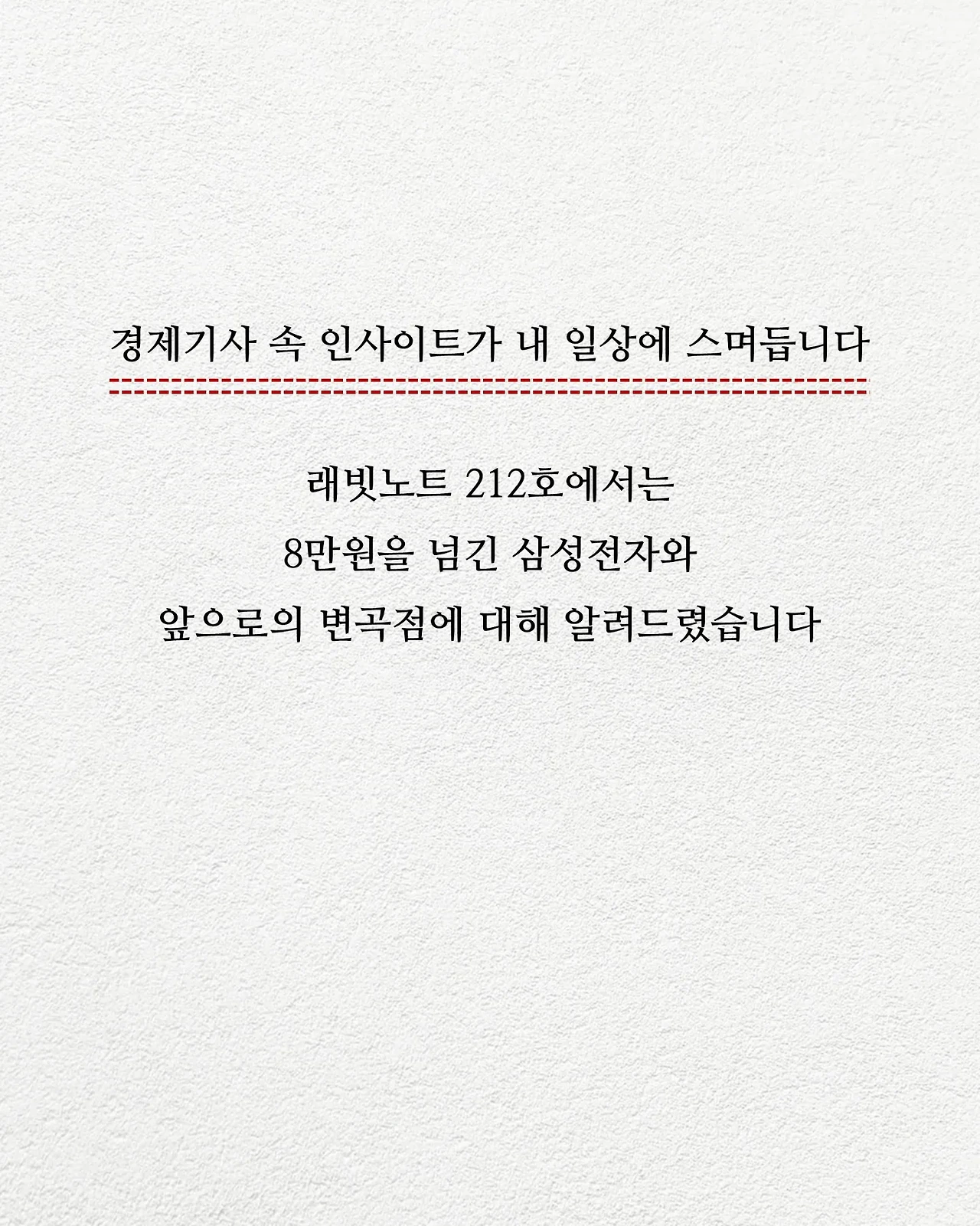 지난주 래빗노트 212호에서 삼성전자의 주가 방향과 변곡점에 대해 자세히 다뤄드렸어요. 아직 읽지 못하셨다면 어서 읽어 보세요.