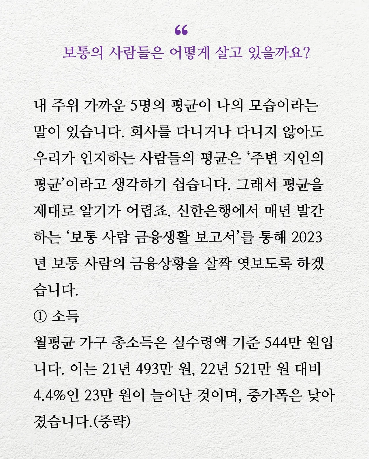 이번 주 래빗노트 215호에서는 보통 사람들의 금융생활에 대한 인사이트를 전해드렸어요. 우리가 평균에 미치지 못해 우울해 하거나 더 높다고 우쭐할 필요 없답니다. 앞으로 내가 어떤 모습으로 살아갈 지를 그려보는 게 중요하니까요.