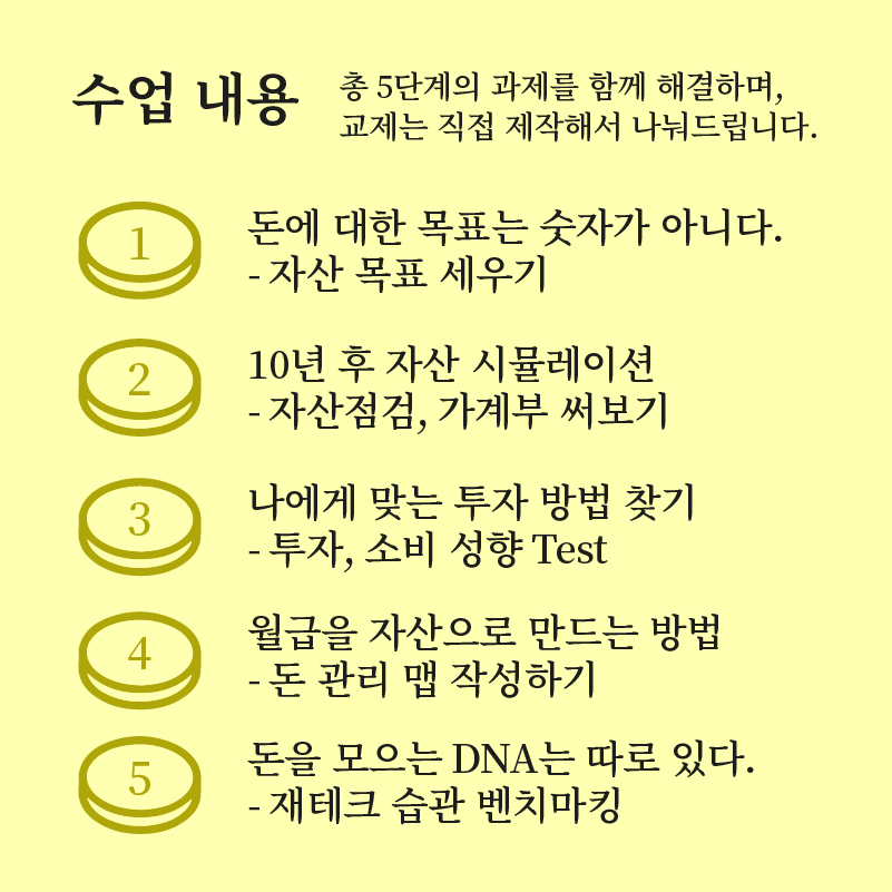 돈에 대한 지식과 실습을 한 번에 할 수 있도록 특별히 교재도 제작해서 드려요. 강의 특성상 많은 분은 모시기 어렵고 소규모로 밀도 있게 진행합니다.