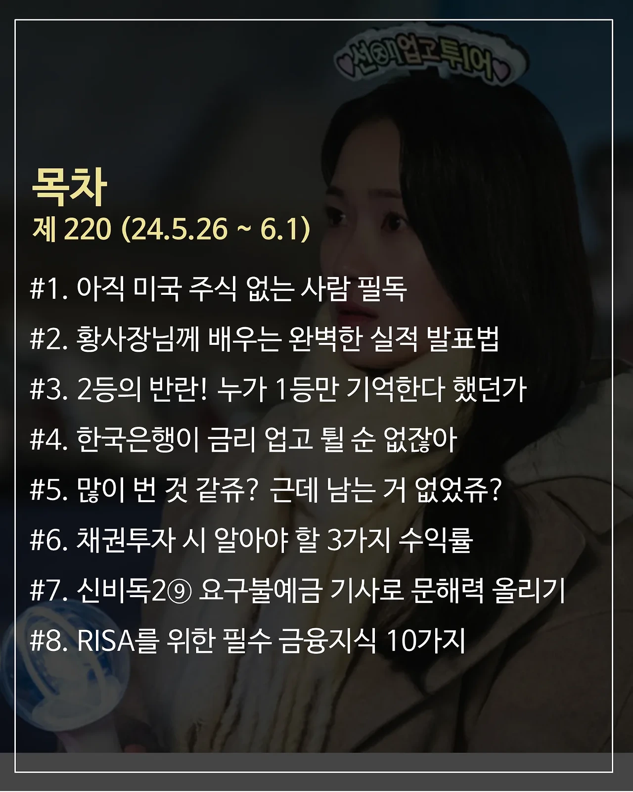 8. RISA 프로젝트에 대한 관심과 질문이 계속 들어오고 있어요. 지난 219호에서 RISA 프트폴리오를 공개했었는데요. 이걸 또 이해 못하실 래빗님들을 위해, RISA를 하기 위해 우리가 알아야 할 필수 금융지식 10가지를 준비했습니다.