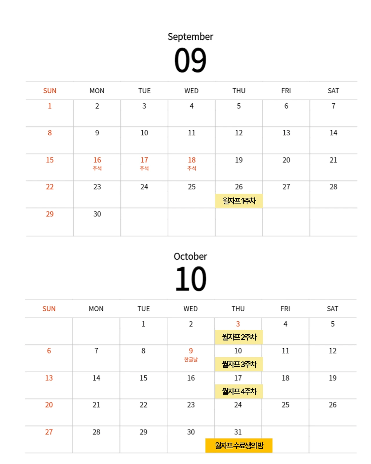 추석 이후 바로 교재 발송해드릴 거예요. 월자프를 이번에 꼭 수강하시고 싶으시면 가급적 빨리 신청하시면 좋습니다.