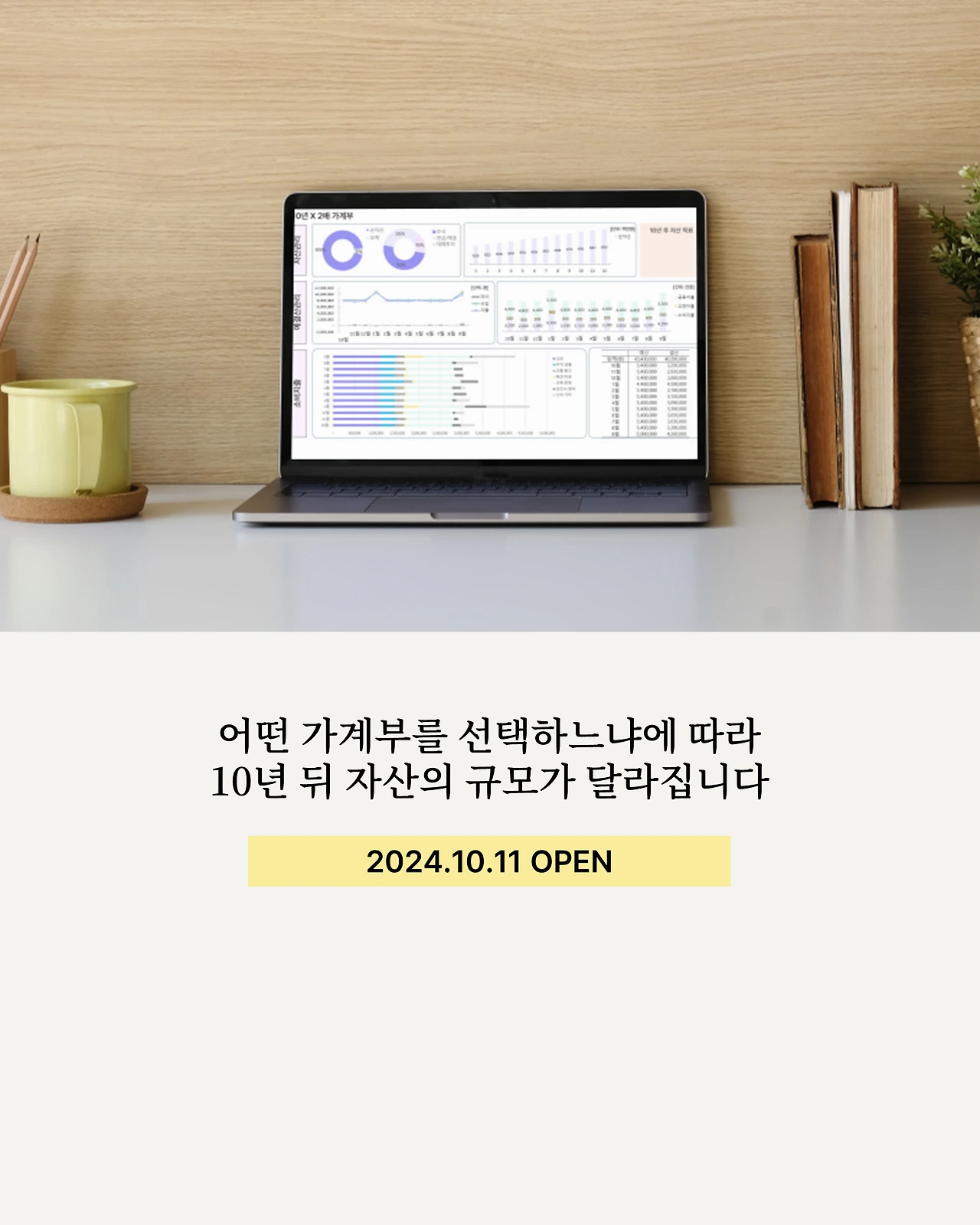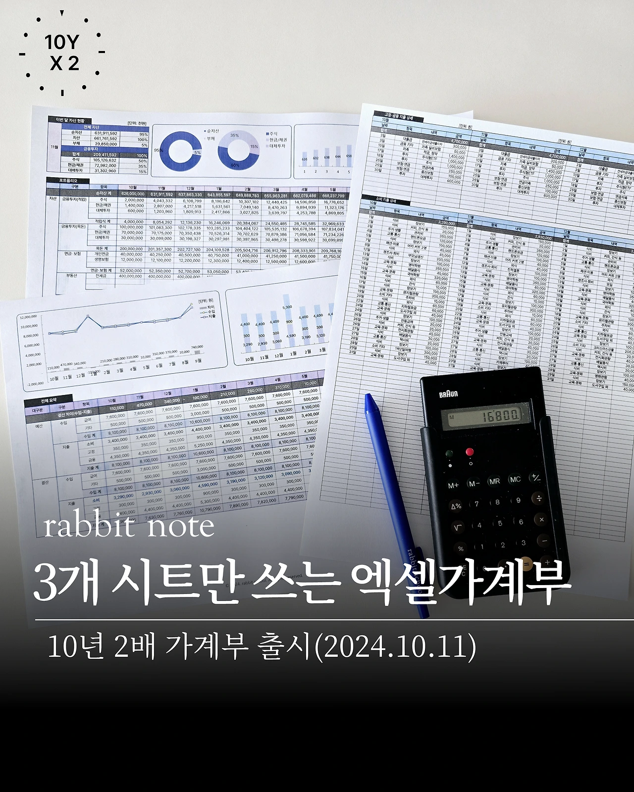내일(10/11) 래빗스쿨 첫 엑셀 가계부 '10년 2배 가계부'오픈합니다. 래빗노트를 구독하시면 보다 큰 할인 혜택을 드립니다.