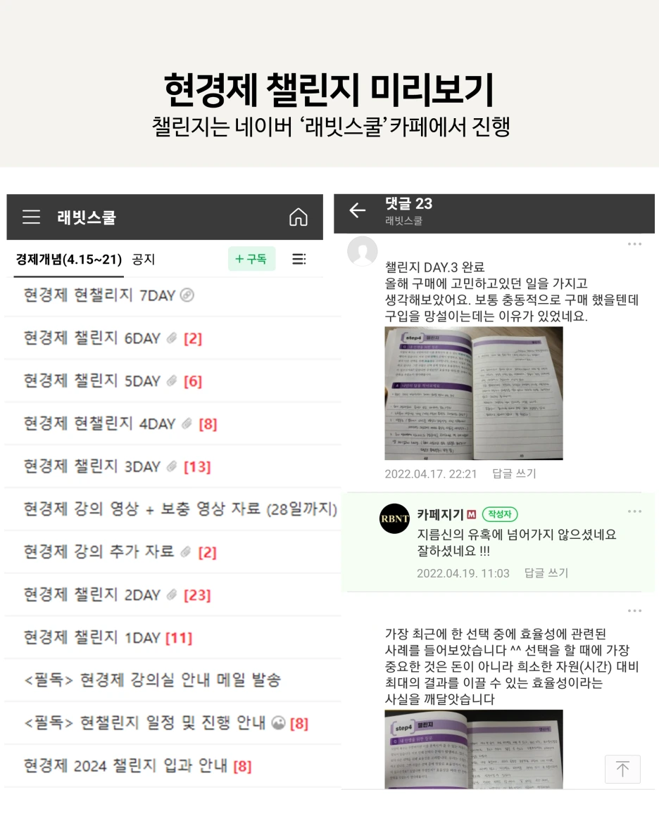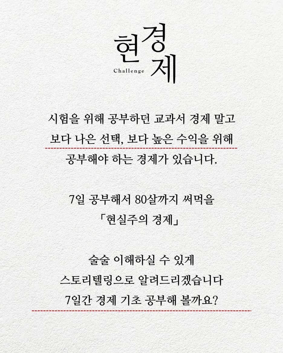 ㅁ'외우지 않고 이해하는 경제'를 혼자 공부하기 힘드시면 현경제 챌린지를 통해 같이 공부하도 완벽하게 익혀보세요.
