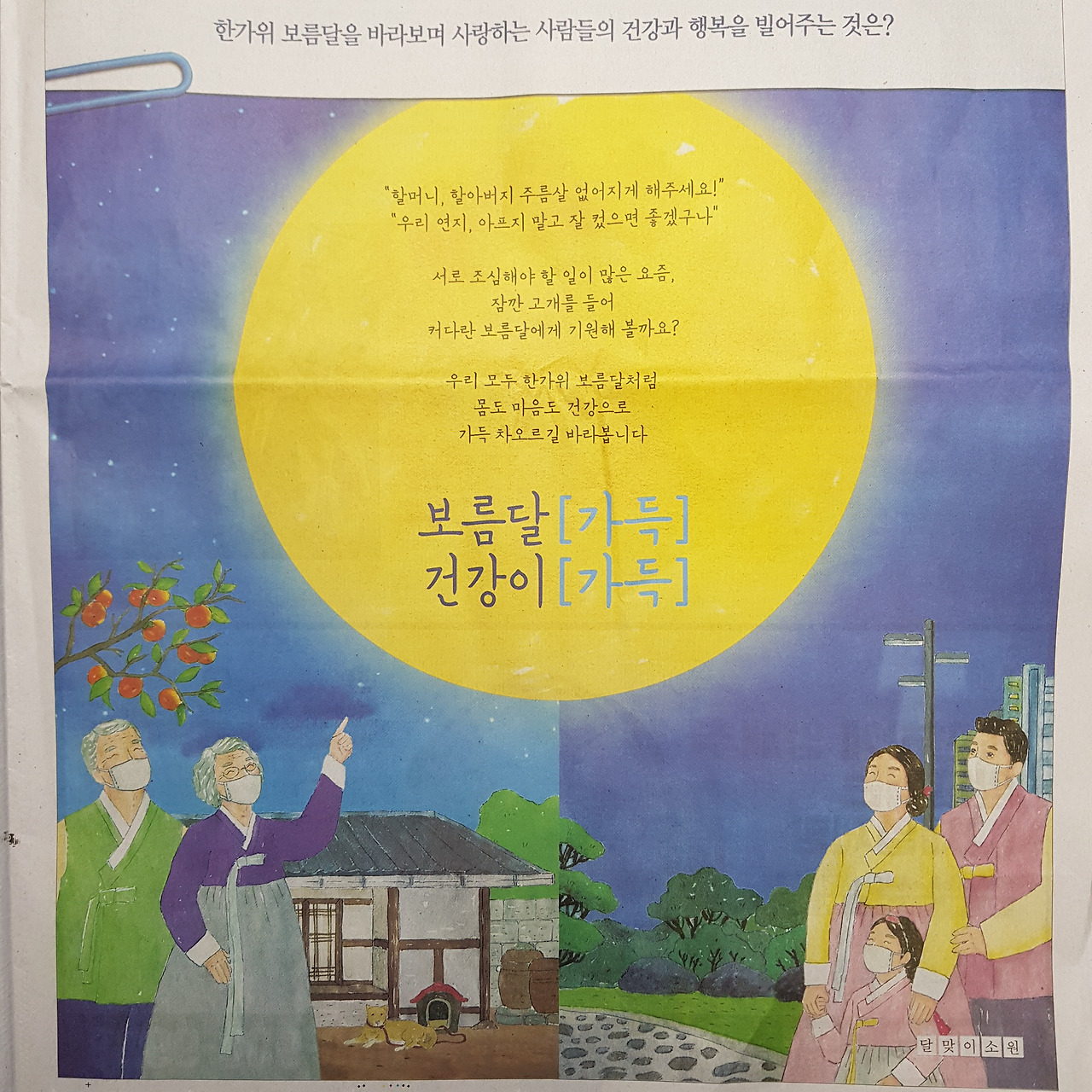 3. 현대차 전면광고. 시골 가지 말고 각자 집앞에서 같은 달을 보자고 한다. 마스크 쓰고.사랑하는 사람들 "건강"과 행복을 빌어주며.