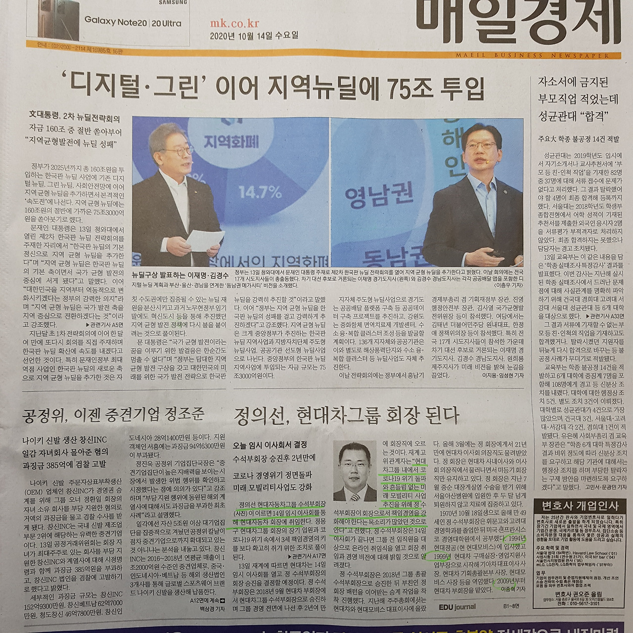 1. 정의선 부회장이 회장으로 승진한다. 현 회장이신 정몽구 회장의 건강 악화와 코로나 장기화 속에서 흔들림 없는 그룹 내 경영이 필요하다는 결론을 내린 것. 지난 2년간 성과를 보자면, 도심 모빌리티 사업부 신설, 공유 플랫폼 투자, 수소차 양산, 배터리·자율주행 동맹, 직급체계 간소화,유연근로제, 전자투표제, 싱가포르 모빌리티 혁신센터, 인도네시아 신공장 등이 있다. 앞으로 과제도 남았지만, 본격 3세 경영으로 불확실성을 제거한 현대차가 더욱 주목 받을 것으로 보인다.