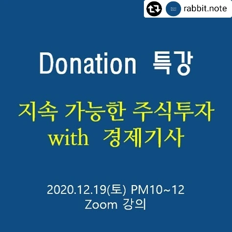 연말, 사회적 거리두기가 날로 격상되어감에 따라 사회적으로 소외되시는 분들이 더 많으실 거 같아 'Donation 특강'이라는 작은 이벤트를 준비했습니다. 말 그대로 강연료는 전액 기부 목적인 강의입니다. 래빗스쿨 런칭 첫 강의이기도 하여 의미있는 시간이 되지 않을까 기대합니다^^