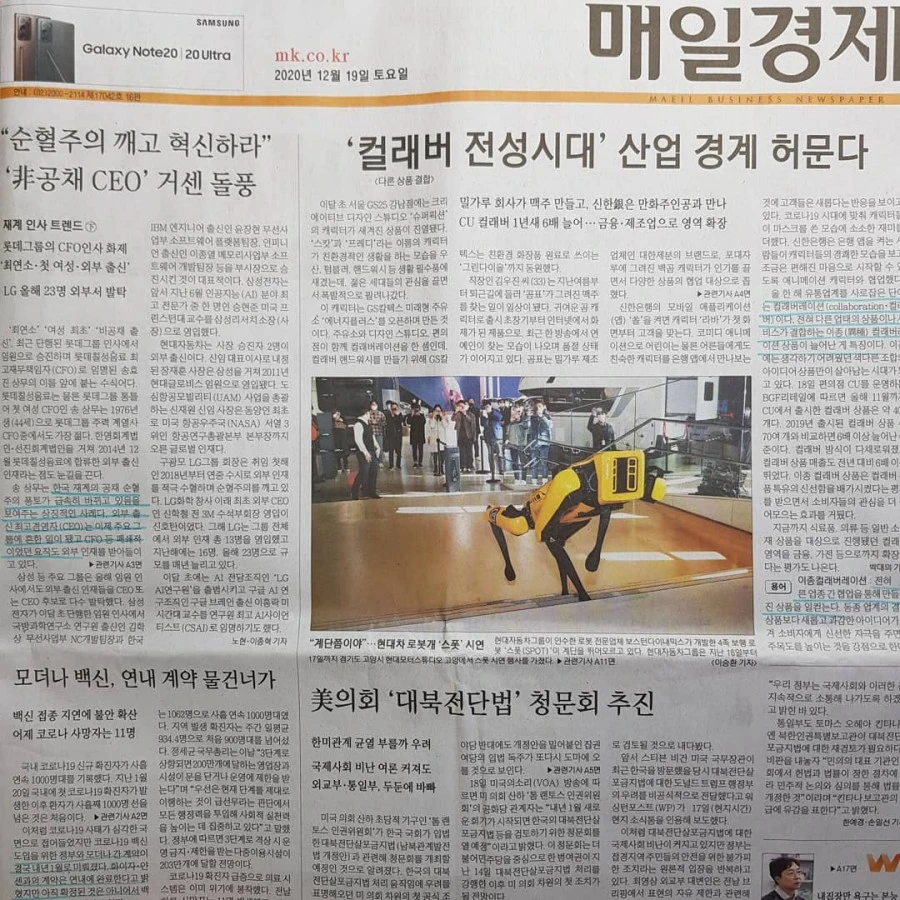 2.이종간 컬래버레이션이 산업 경계를 허문다는 기사다. 다를 이(異)자를 써서 다른 산업의 캐릭터를 도입한 상품들이 많이 등장하고 있다는 내용. 그냥 '콜라보'라고 많이 부르는 게 이것이다. 사실 없었던 건 아니었고 fad(일시적 유행)로 주목 받기 위해 짧게 짧게 콜라보를 하던 게 지금은 좀 더 상시적으로 변했다고 할까. 요즘은 레트로 감성을 타고 SNS를 통한 홍보로 더 재미 요소로 쓰이는 것으로 보인다. 너무 자주 쓰면 원래 자기 색을 잃는다는 단점이 있다. 개인적으로 제일 신기했던 건 홈택스와 뽀로로의 콜라보였고, 가장 성사됐으면 하는 콜라보는 맥와퍼(빅맥+와퍼)이다.