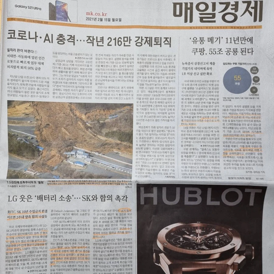 1. 쿠팡이 나스닥 상장을 진출을 위한 신고서를 12일(현지시각) 미국 증권거래위원회(SEC)에 제출했다. 예상 시총은 최대 500억달러(약 55조원, 네이버 시총 60조)이고 이번 상장을 통해 1억달러(약 11조원)을 조달하여 국내 유통· 식료품·음식배달·여행시장을 공략하겠다는 계획이다. 아직 1조원 적자 상태에 비즈니스 영역이 한국에 국한되어 있음에도 불구하고 외신들은 2014년 알리바바 상장 이후 외국기업 최대규모 IPO라고 평가하고 있다 한다. 이번 상장으로 대박은 1주당 29배의 슈퍼 의결권을 갖는 김범석 창업자, 그를 알아보고 투자해서 쿠팡 지분 38%를 보유한 손정의 소프트뱅크 회장이고, 형 잘 둔 남동생과 그와 결혼 잘한 부인, 1인당 자사주 200만원 규모를 받는 5만명 쿠팡맨들이겠다. 이번엔 그 분이 저의 숨겨진 오빠였으면 하는 바램이 듭니다.