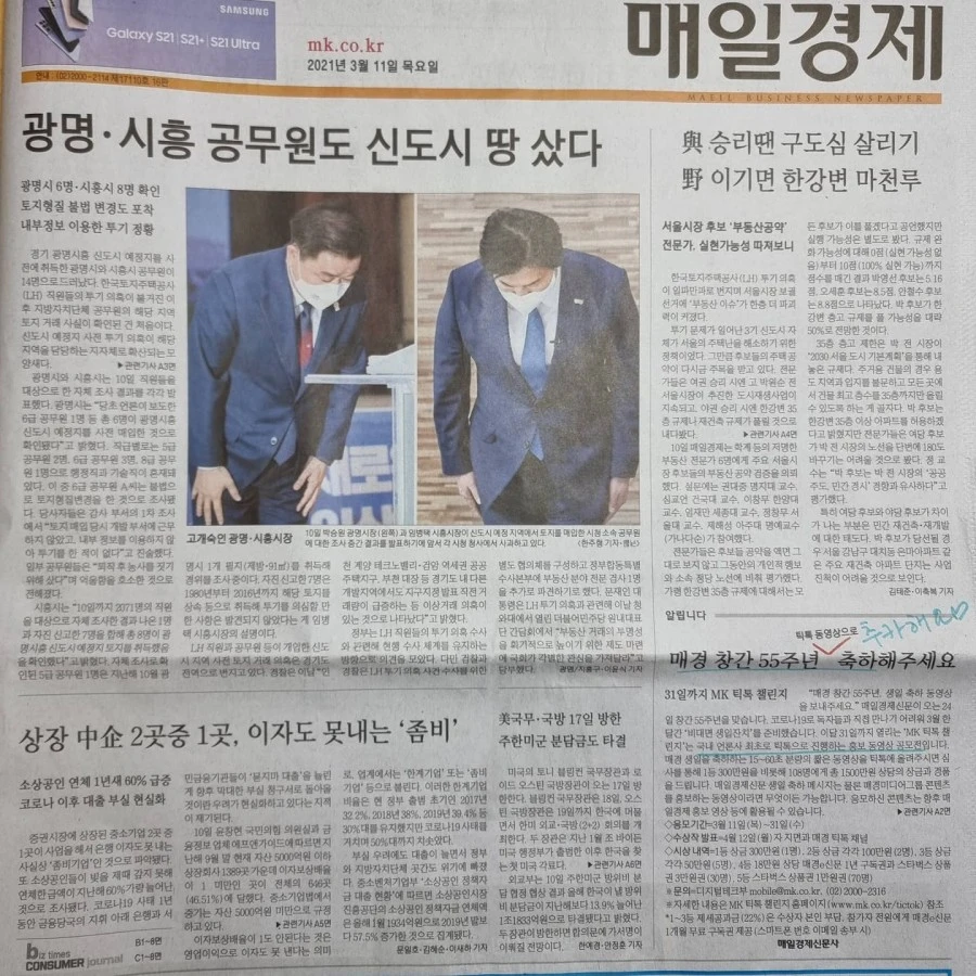 3. 단신으로 나온 홍보성 기사다. SC제일은행은 첫 거래 개인고객이 일복리저축예금에 1억원 이상(최대 10억원 이내) 가입하면 신규일로부터 최대 60일간 매일 잔액에 대해 연 1.0%(이하 세전)의 특별금리 혜택을 주는 이벤트를 실시 중이다. 기사 제목이 파킹통장인데. 파킹(parking: 주차)하는 것처럼 수시로 입출금이 가능하나 보통예금보다 이자가 높아 고액자산가들이 자주 이용하는 통장을 말한다. CMA과 비교했을 때 5000만원까지 예금자 보호가 되는 게 특징이다. 이게 왜 갑자기 여기에 나왔을까? SK바이오사이언스 끝나고 나올 금액을 예치받고자 하는 거다. 이제 공모주가 균등배정으로 바뀌면서 낮은 이자로 증권사 회원 등급을 위해 예수금 통장에 금액을 채워넣을 필요가 없어졌기 때문이지. 그래서 단신이지만 세상의 변화를 보여주는 존재감 있는 기사였다.