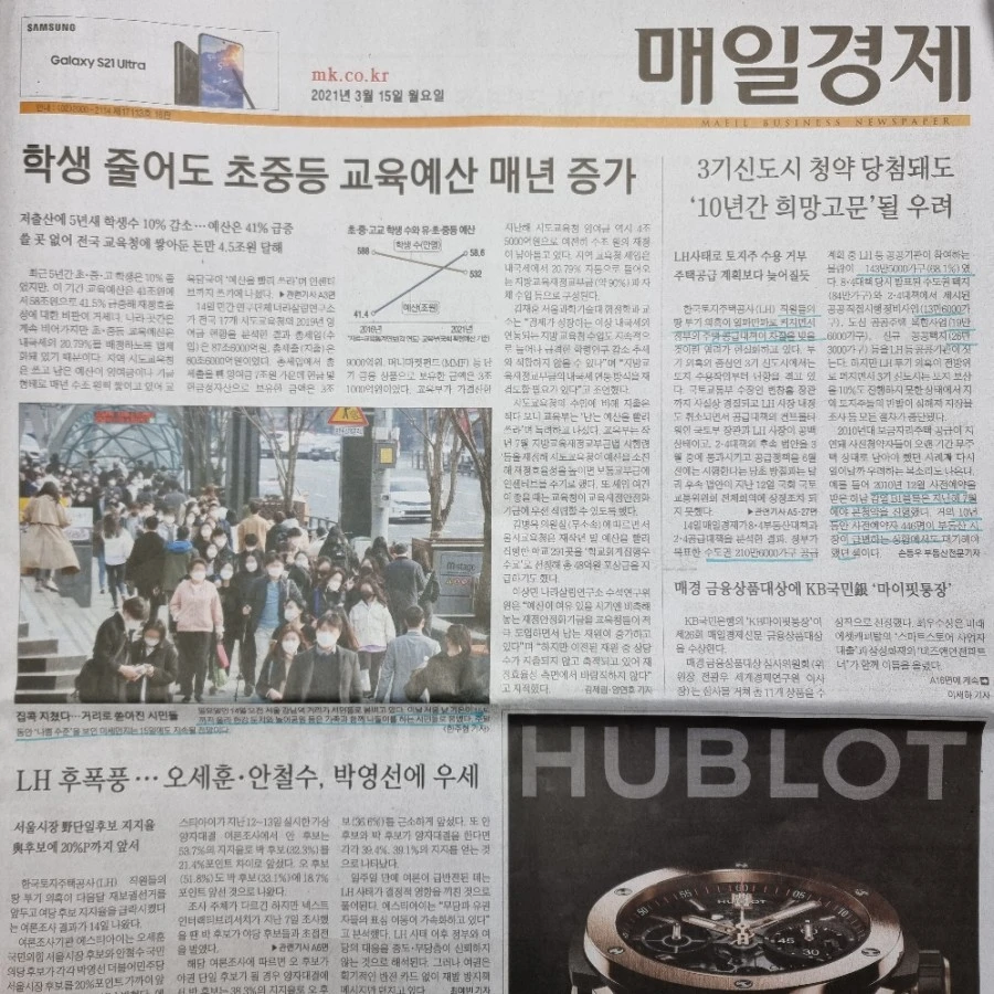 1. LH직원들 땅 투기 의혹 사태로 주택공급 계획에 차질이 있겠다. 조사 과정에서 몇몇의 LH직원들은 생사를 달리했으며, 변창흠국토부장관은 사의를표했고 문대통령은 받아들였다. LH 특검·3기 신도시 지정 취소· 이전 신도시들도 다 조사 하자는 등등 여론이 좋지 못해 2·4부동산 대책도 진행이 어려운 실정이다. 3기 신도시 사전청약 일정도 줄줄이 미뤄지지 않을까 한다. 기사에 감일지구 사전청약이 2010년 12월에 했다가 10년만에 본청약 진행했다 하는데.. 아는 지인이 이거 기다리다가 포기하신 분이 있으셨다. 물론 토지보상 지연이 큰 이유였겠지만 문화재가 나와서 더 오래 걸렸다는 소리를 들었다. 어쨌든 감일·하남·송파 이쪽 동네가 백제 문화재가 많이 묻혀 있다는 것도 기억하시길.