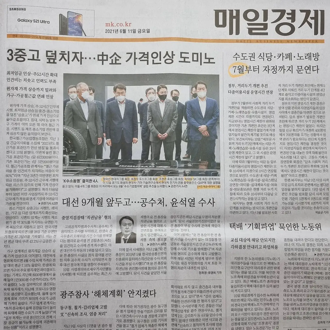 1. (매경+중앙) 묘하게 둘다 '수소 어벤저스'라는 제목이다. 사진에 나온 정의선 현대차그룹 회장, 최태원 SK그룹 회장, 최정우 포스코그룹 회장, 조현준 효성그룹 회장이 모여 '수소기업협의체' 설립을 추진을 준비했다. 지난 3월에 수소위원회 설립 계획 수립 → 6월에 협의체 설립 논의 → 7월에 참여 기업 확정 → 9월에 출범 순서다미시적으로는 기업의 미래 먹거리를 위한 것이고, 거시적으로는 친환경 시대에 민간 기업이 주도하겠다는 것이다. 수소경제는 어느 기업 단독으로 할 수 없다. 현대차가 수소차를 2014년부터 만들고 있는데 서울 시내 충전소가 3곳 밖에 없는 것만 봐도 알 수 있지 않은가. 미국과 일본은 이미 수소 밸류체인에 앞서가고 있다. 우리 수소 경제도 이 어벤저스들이 잘 구축해 나가셔야겠다.