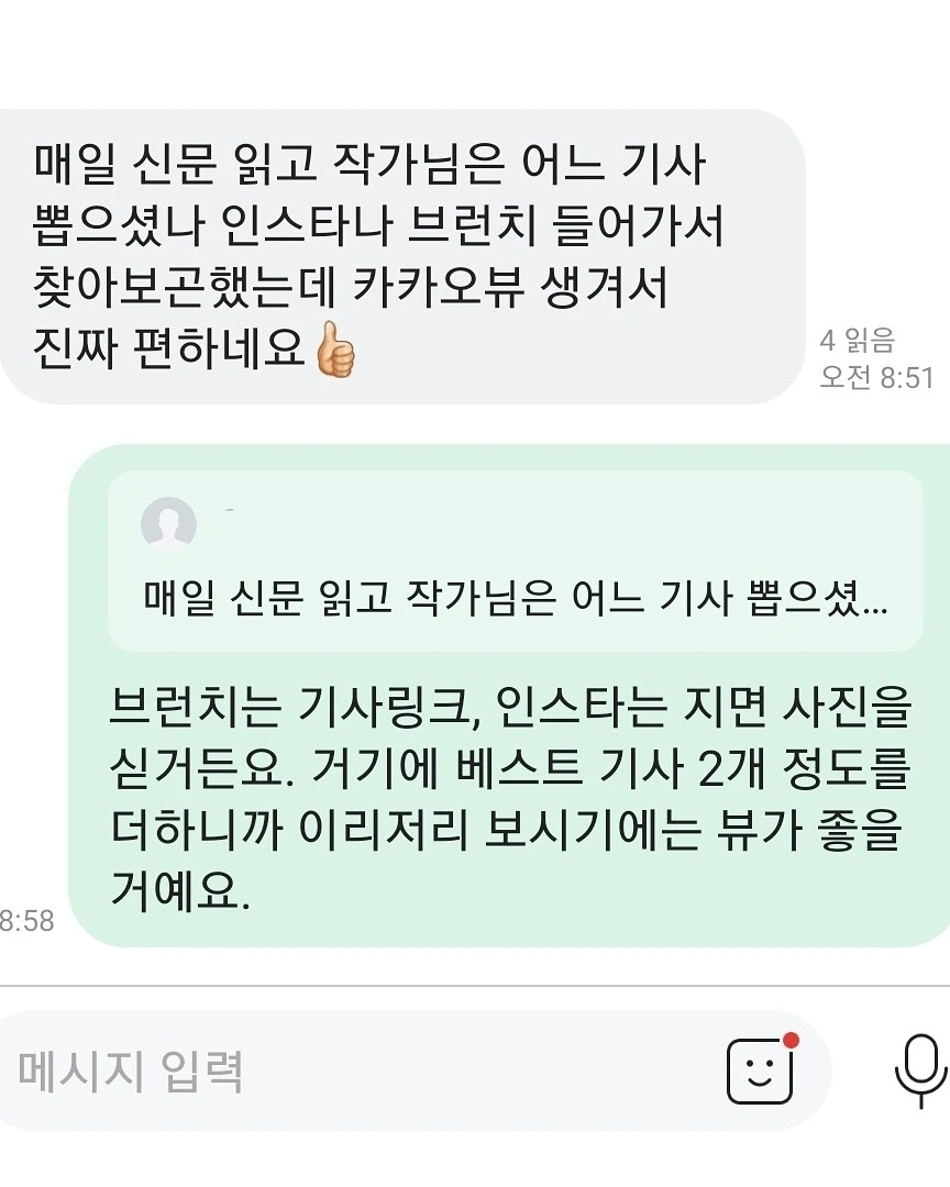 카카오뷰로 <경제기사로 여는 아침>을 보니까 좋다는 피드백