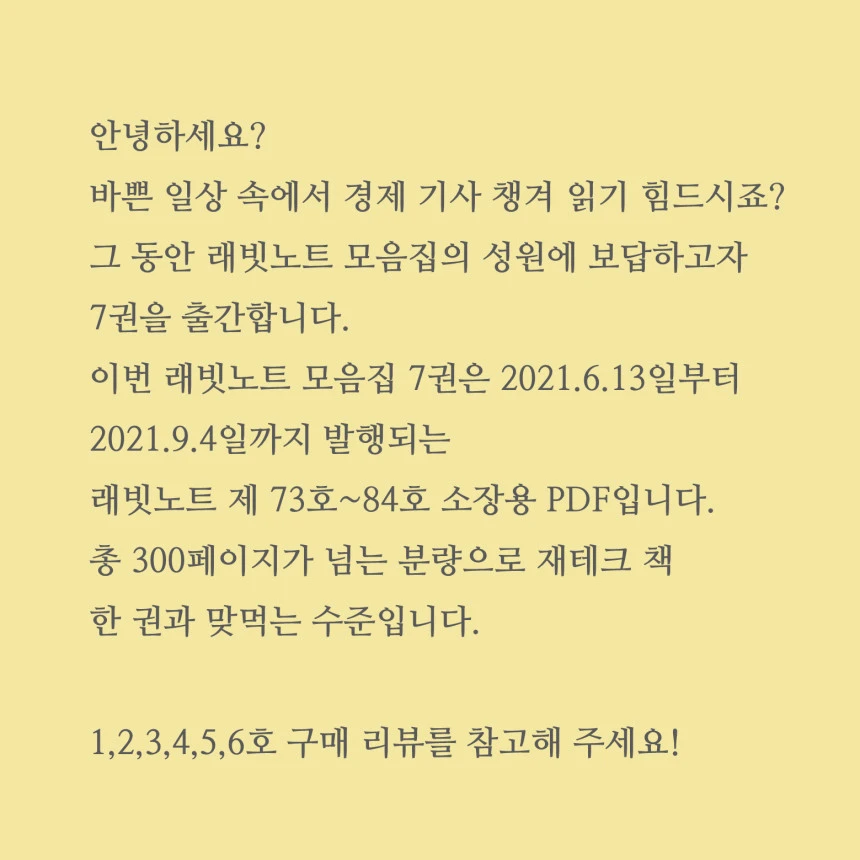* 래빗노트 정규 구독자분은 재구독 시, 연간구독자분들에게는 무료로 보내드립니다. 매주 생생한 재테크 인사이트를 받고 싶으시면 래빗노트를 구독하세요.