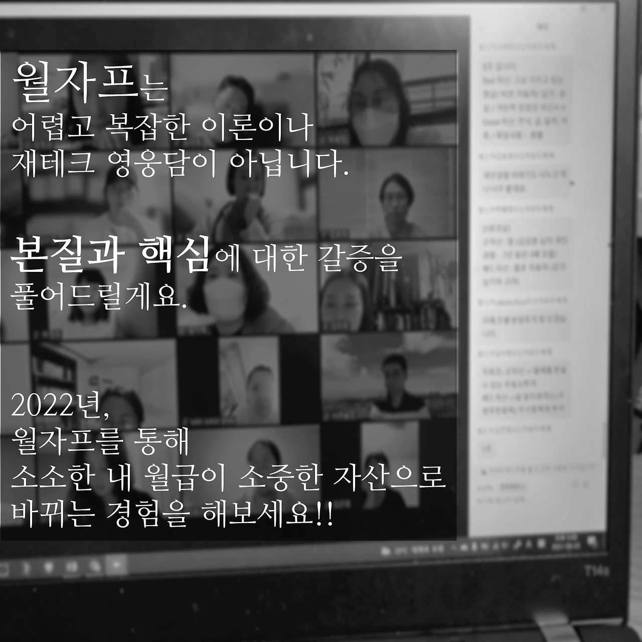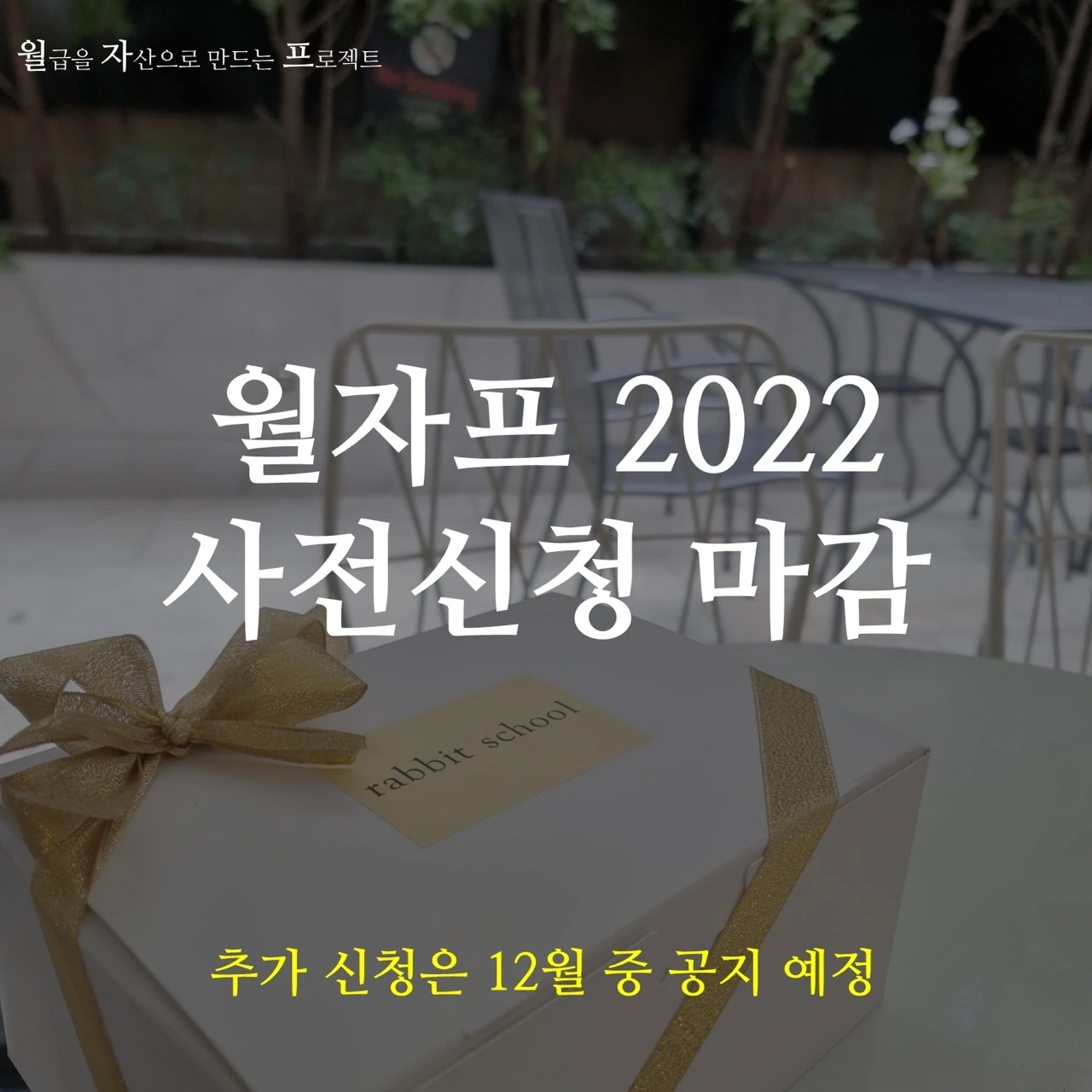 '월자프2022'은 사전신청으로 정원이 모두 마감되었습니다. 12월 중 수강취소 여석 발생분에 대해서만 추가 신청을 받을게요. 여러분의 뜨거운 성원에 마음 깊이 감사드립니다.