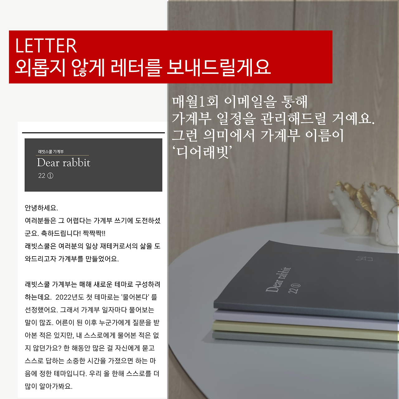 디어래빗 기다려 주셔서 감사합니다. 내년에는 래빗노트부터 가계부까지 래빗스쿨 안에서 함께 해요.
