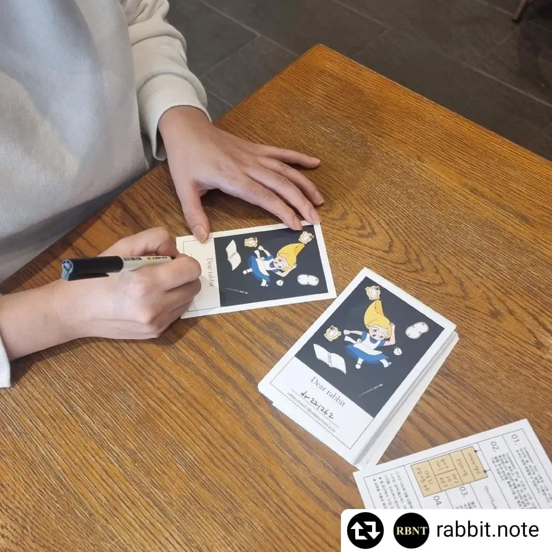 래빗님들의 소중한 디어래빗 예쁘게 포장하고, 웰컴 카드에 여러분만의 시리얼 넘버를 적어서 배송준비하고 있습니다.(시리얼 넘버 적고 있는 작가님 모습 보이시나요?)