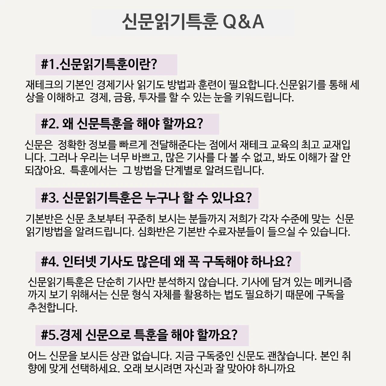 신문은 읽고 싶지만 막상 시작하는 건 망설여지시는 분들, 신문은 꾸준히 보고 있지만 남는 게 없으시다는 분들, 경제 공부를 신문으로 하고 싶으신 분들!! 신문읽기특훈과 함께 해요.