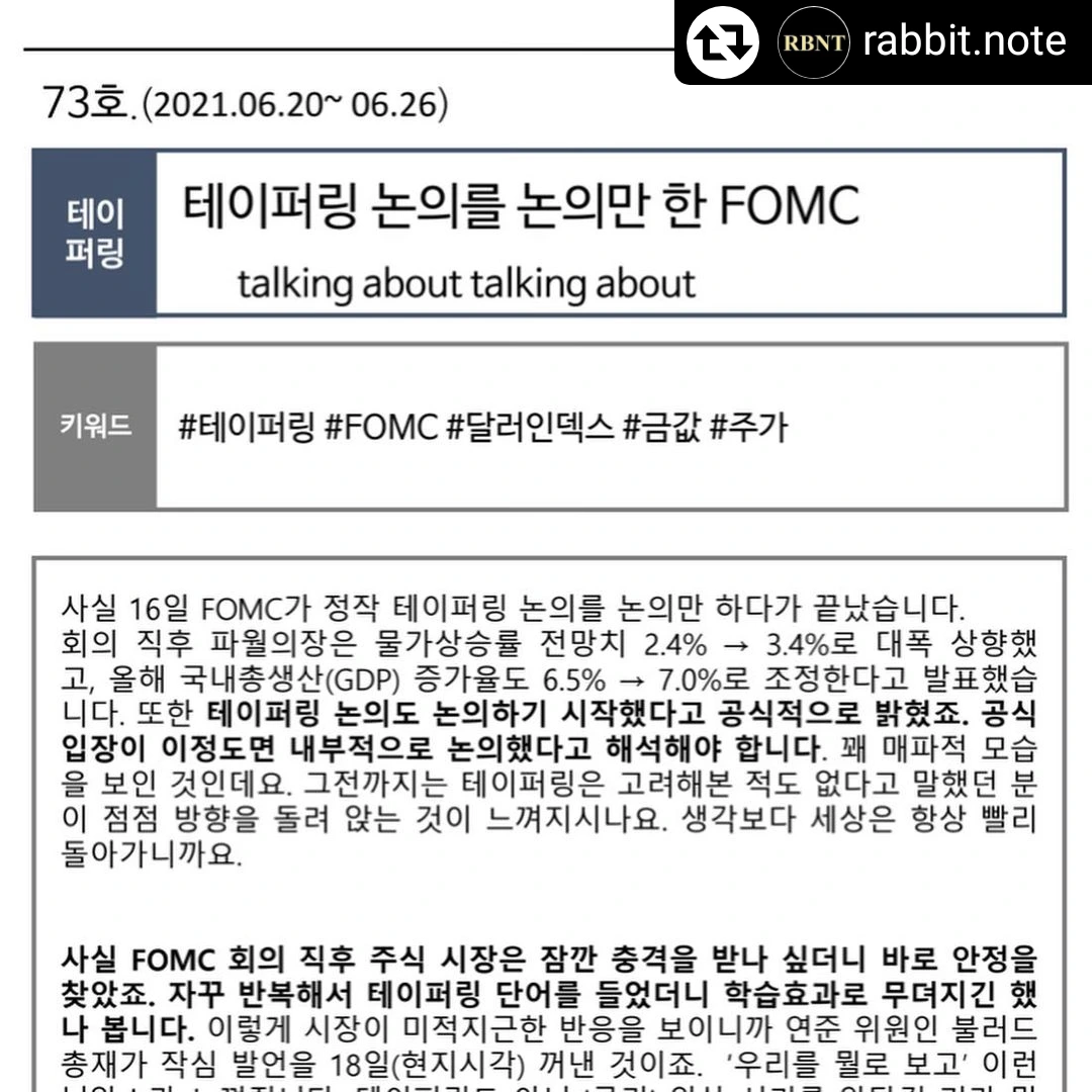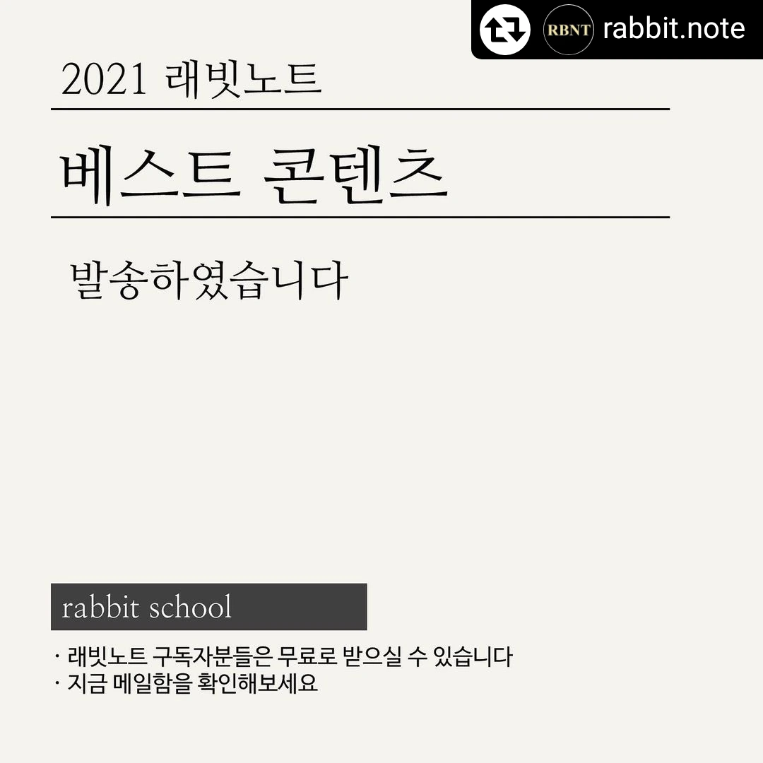 내년에도 큰 이슈들은 그대로 간다고 하니 2021년을 반면교사 삼아 2022년도 잘 준비하셨으면 합니다. 2021 래빗노트 베스트 콘텐츠와 함께^^
