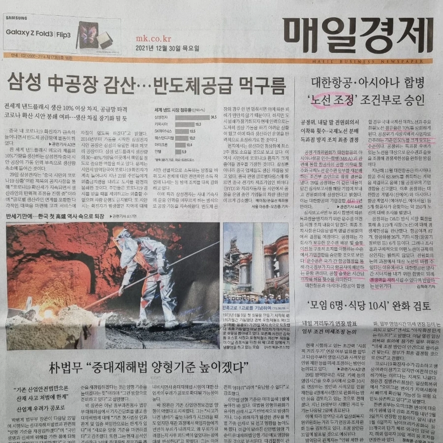 1. 처음부터 독과점을 예상했던 대한항공과 아시아나의 합병에 대해 공정위는 조건부 승인으로 잠정 결론 냈다. 운수권을 배분하고 슬롯을 이전하라는 게 그 조건이다. 운수권은 국가 간 협정을 통해 각국 정부가 자국 항공사에 배분하는 운항 권리를 말하는데 이번 합병으로 점유율이 70%를 상회하며 공정위 기준 50%를 웃도는 수준이 되었고, 슬롯은 시간당 이착륙 허용 횟수로 공항 혼잡도를 말하는데 향후 국토부와 협의 후 이전 여부를 결정할 방침이라 한다. 합병의 이유가 시너지 아니었던가. 두 항공사의 결합 후 독점이 발생하는 노선은 대부분 규제 대상일텐데, 해외 항공사에 넘기지 않는다 치더라도 그런 장거리 노선을 국내 LCC에서 얼마나 소화할 수 있을지 의문이다. 공정위의 이같은 방침으로 일감이 줄면 고용문제가 발생할 수 있다는 점도 주의해야 한다. 공정위 승인 다음으로 아직 주요국(7) 심사가 남아있다.