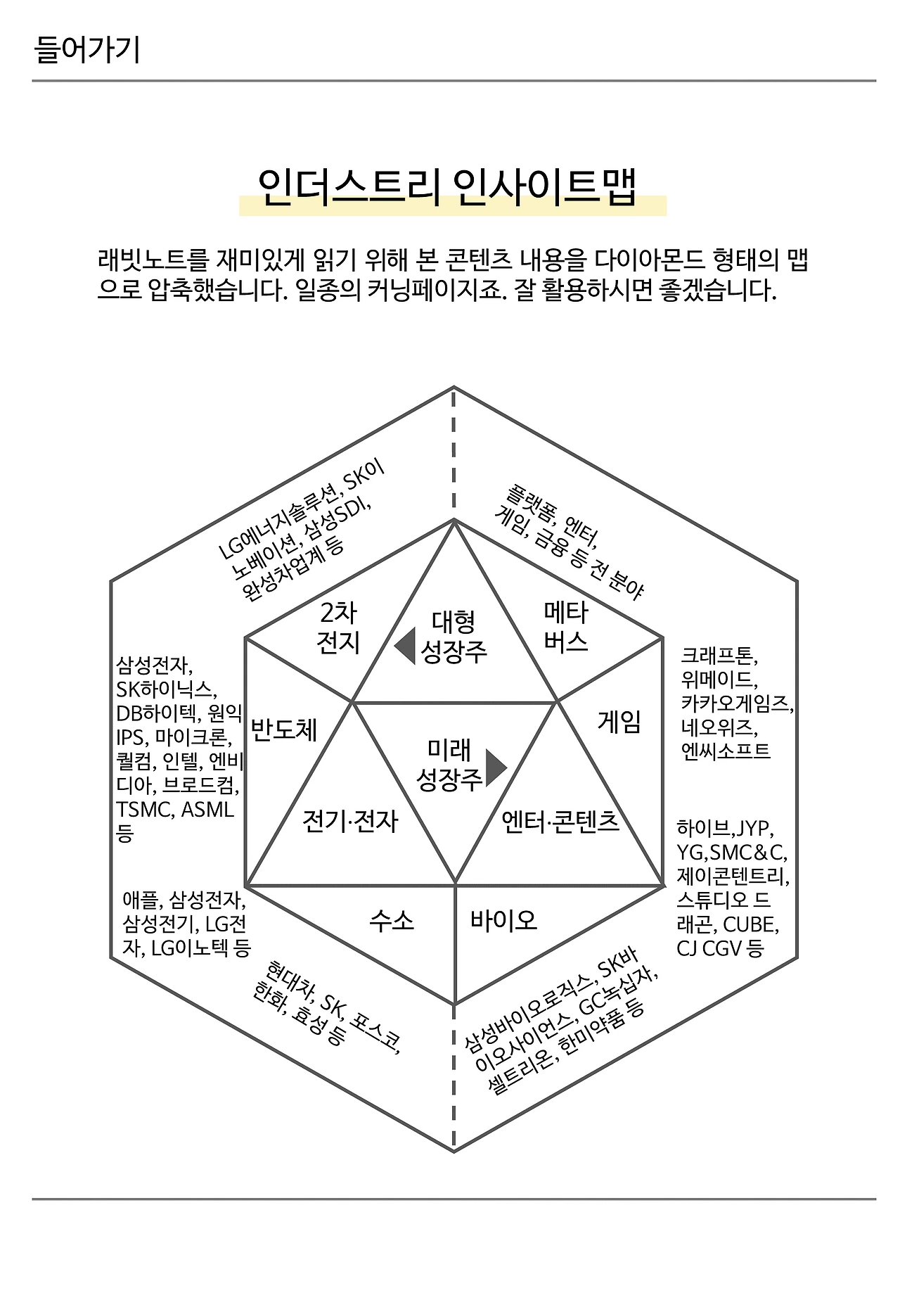 매주 래빗노트와 같이 보세요 특히 기본 개념에 약하신 분들은 래빗노트 보실 때 출력해서 옆에 두고 보시면 더 이해가 잘 될 거예요. 마치 사전처럼… 래빗님들에게 이해도를 훨 올려줄거에요! 단독으로 읽어도 중요 핵심 산업의 이해도가 팍팍 !!1월 27일 래빗노트 구독자 분들 모두에게 보내드립니다.조금만 더 기다려주세요