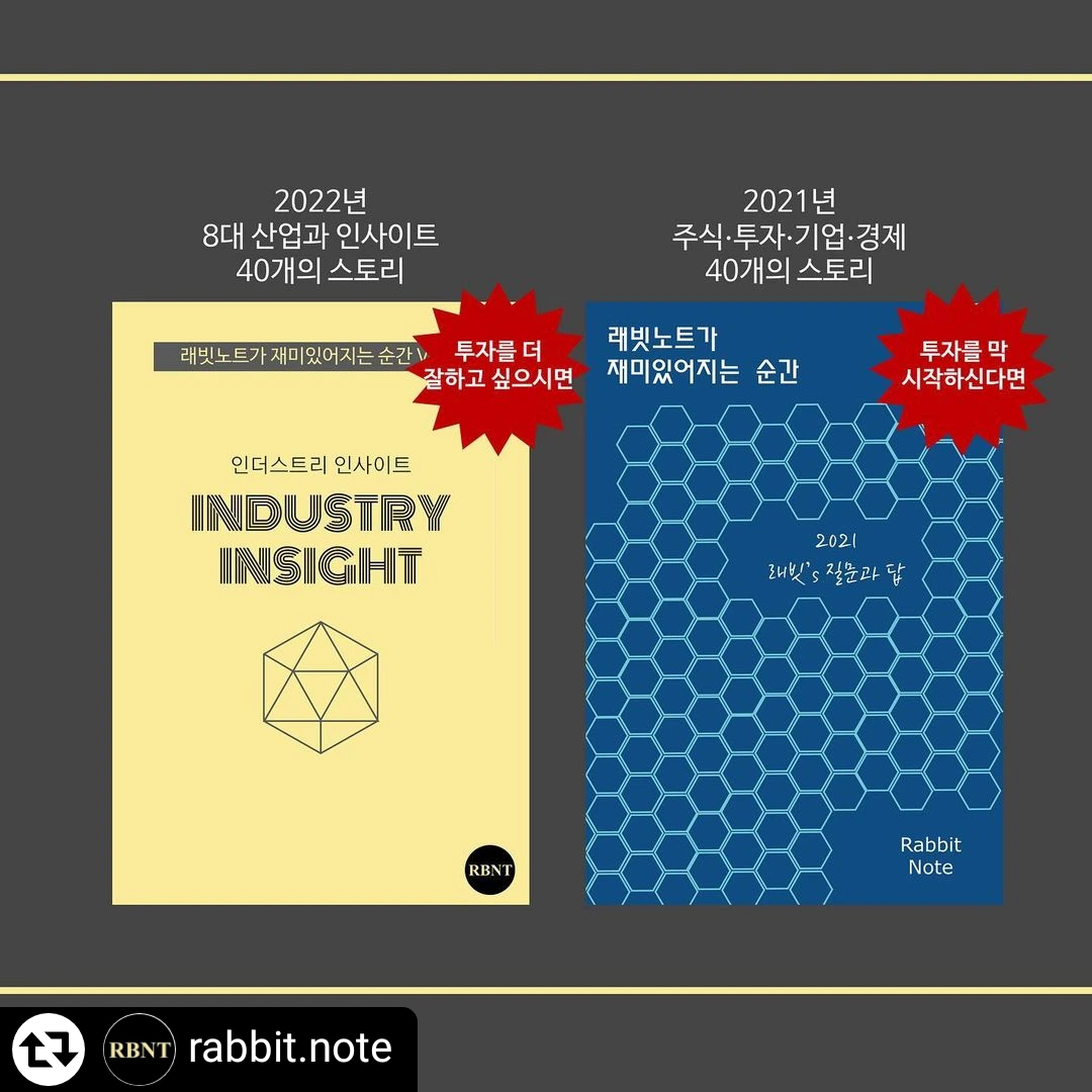 드디어 1월 27일 오늘!! 래빗노트 구독자분들에게 2주년 특별 부록<래빗이 재미있어지는 순간 vol2>을 보내드립니다. 2022년 관심 있게 지켜봐야 할 핵심산업과 래빗님들깨서 궁금해하셨을 여러가지 질문들을 담아 정리해드렸어요.Pdf분량으로 총 66페이지인데.. 핵심 of 핵심만 담았습니다.