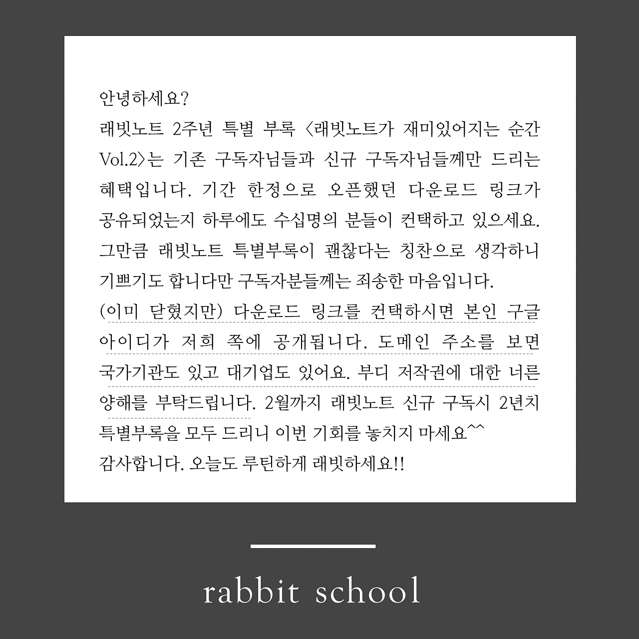 래빗노트 2주년 특별부록 안내