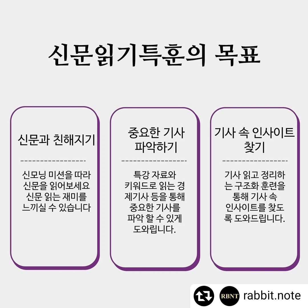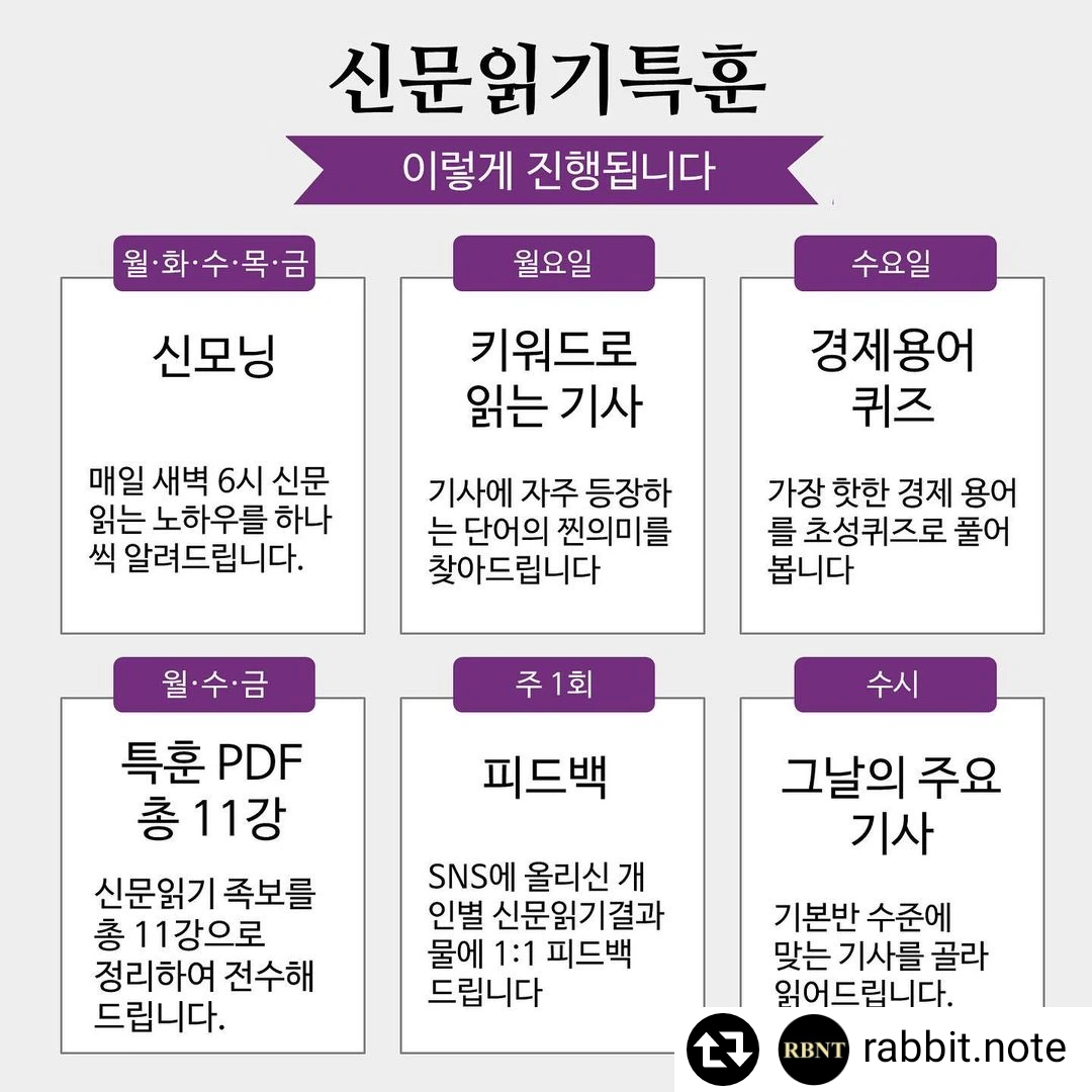 신문을 꾸준히 보고 있지만 발전이 없으시다는 분들, 신문 읽는 게 두려우신 분들, 바쁜 생활 속에서 효과적으로 신문 읽고 싶으신 분들은 신문읽기특훈을 신청해보세요!