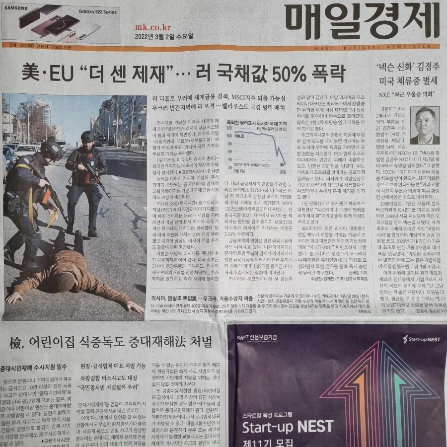 2. (중앙) 중립국인 스위스도 기존의 입장을 바꿔 대러시아 금융 제재 동참을 선언했다. 이제 푸틴과 그의 친구들 367명의 스위스 내 자산이 동결될 예정이다. 엄격하게 은행비밀법이 시행중인 스위스는 영화에서 봤듯이 각 나라에서 자금을 은닉하기 위한 금고로 많이 활용되는 곳이다. 이걸 막으려고 가려던 라브로프 러시아 외교부 장관은 유럽내 여행금지 조치에 따라 비행기를 탈 수 없었다. 꼬시다. 러시아 재벌과 정치인들도 그래서 스위스에 약 110억 달러( 13조 2495억원)이나 넣어놨는데 스위스가 큰 결단을 한 것이다. 스위스 카시스 대통령은 중립국에 대한 신뢰가 떨어지면 앞으로 자금 유치가 어려울 것이지만 용기를 내어 잠시 중립국 지위를 내려 놓겠다 했다. 스웨덴과 핀란드 같은 중립국도 우크라이나에 군사적 지원을 할 정도였다는 점도 주목해야 한다. 러시아가 유럽을 통합시키는 힘을 가지고 있을 줄이야. 유럽 일은 유럽이 결정하겠다는 마크롱 대통령과 EU의 활약이 더욱 기대된다.