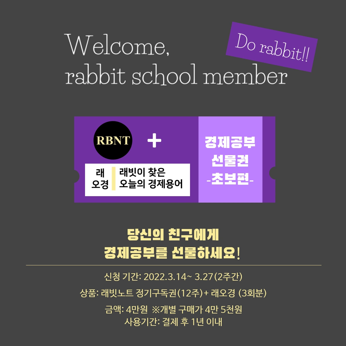 ● 기간 : 래빗노트 정기구독 (12회) + 래오경 (3회 ) 약 3개월
