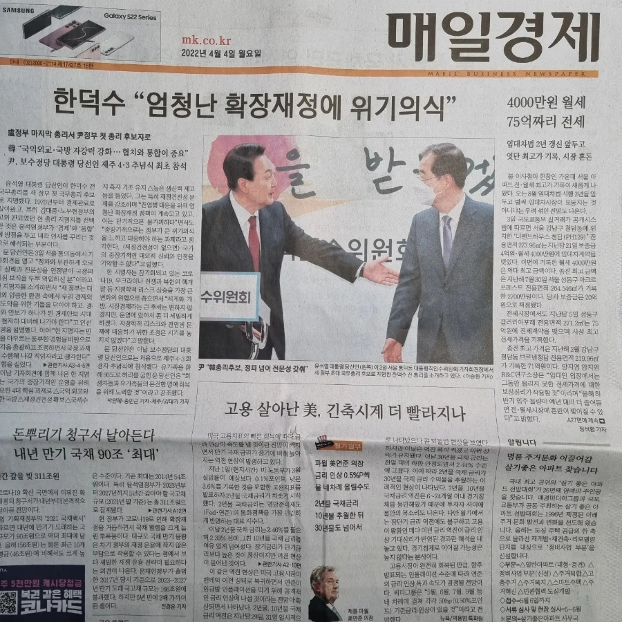 1.(중앙)외국인들은 석달간 7조원을 팔고 나가며 지난 3일 기준 코스피 내 외국인 비중이 31.61%까지 떨어졌다. 6년 만에 가장 낮은 숫자라고 한다. 러·우크전 장기화, 미국의 긴축 모드, 원자재가 상승에 따른 기업 마진 축소, 강달러 등이 그 이유다. 올해는 연초에도 그닥 장밋빛 전망은 내놓지 않았던 증권사였지만 1분기 지나자마자 또 줄줄이 코스피전망치를 내리니 살짝 서운해 진다. 지금 코스피 2700대니까 연말까지 10% 상승한다 해도 3000인데, 그 정도도 기대 하지 말라는 말씀.