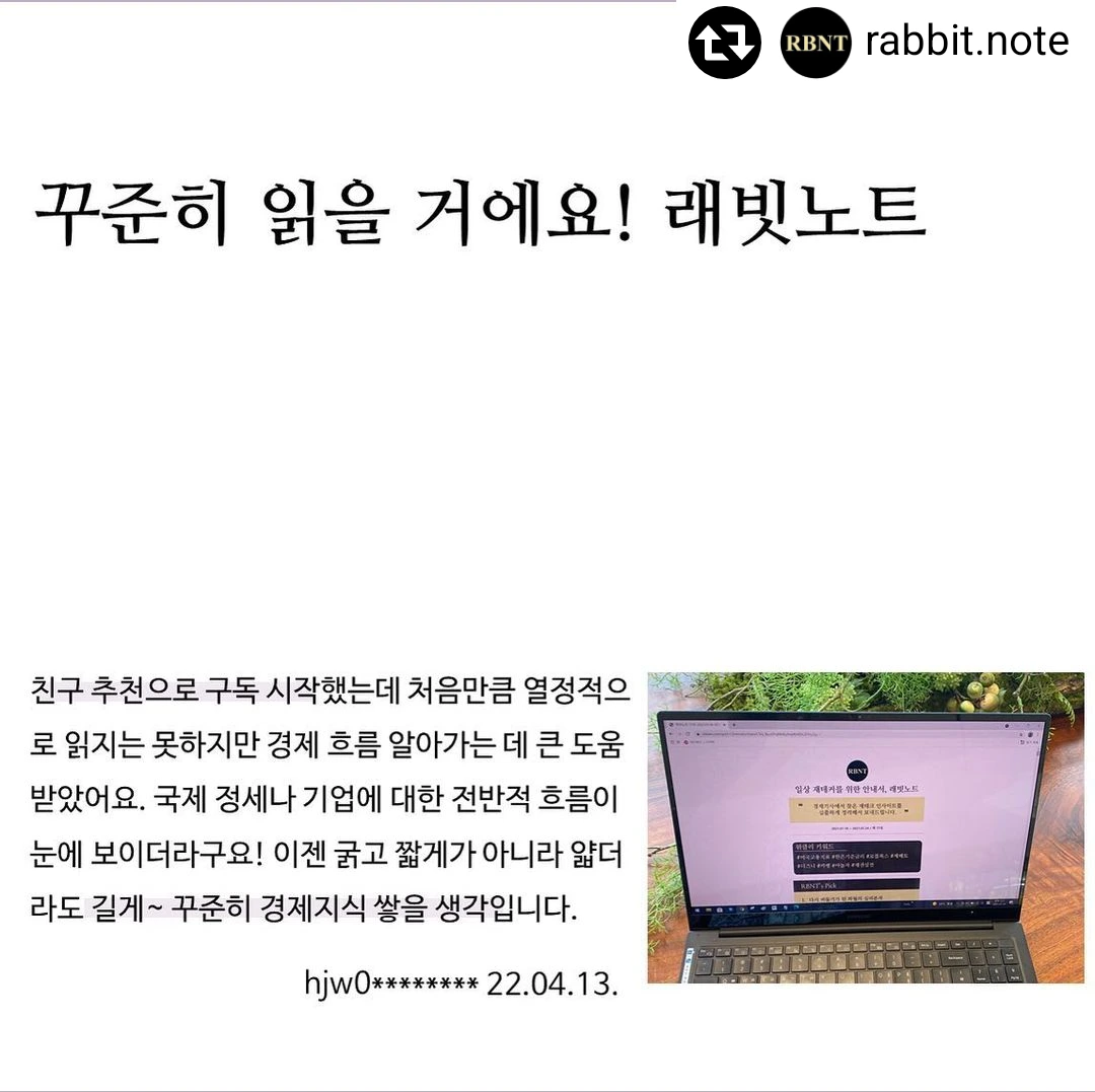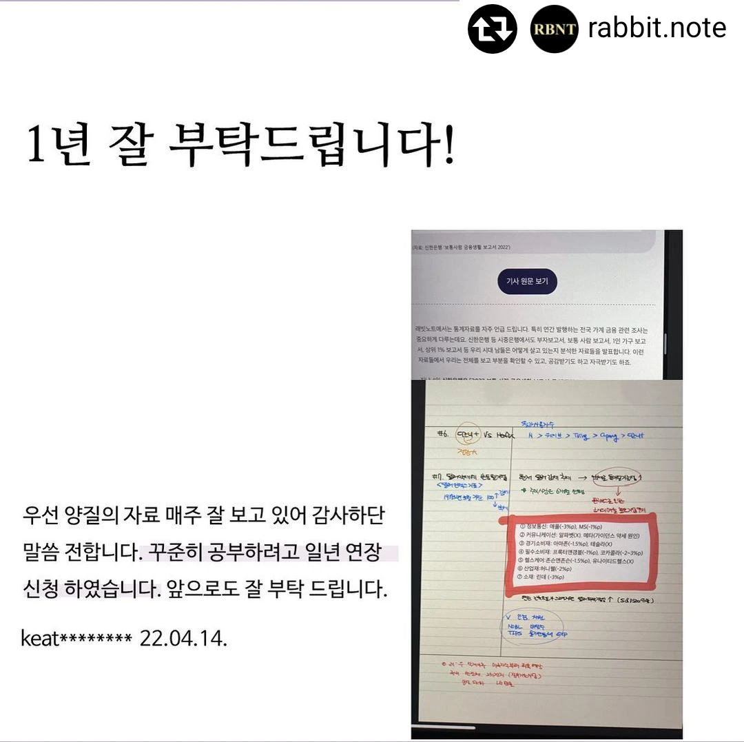 래빗노트 연간 구독 1년이라는 긴 시간을 저희를 믿고 구독해주신 분들에게 다시 한번 감사드린다는말씀 드립니다!