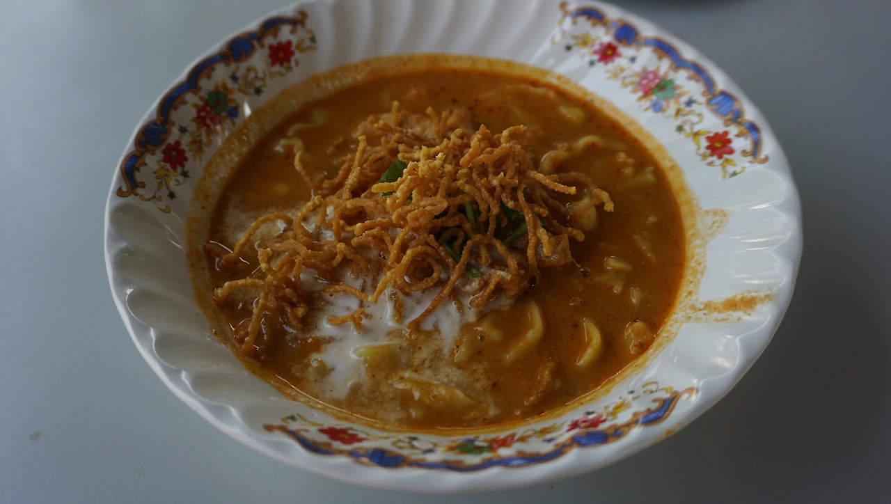 카페에서 멀리 떨어지지 않은 곳에 있는 '카오 소이' 식당에 갔다. 카오 소이는 코코넛 밀크와 커리 소스가 들어간 국물에 면을 넣고 끓인 요리다. 부드러운 커리에 향신료가 더해진 맛이 나는 카오 소이는 스타일에 따라 계란으로 만든 면을 쓰거나 쌀국수 면을 넣는데 치앙마이에서 먹었던 카오 소이에는 대부분 계란면 들어가 있었다.