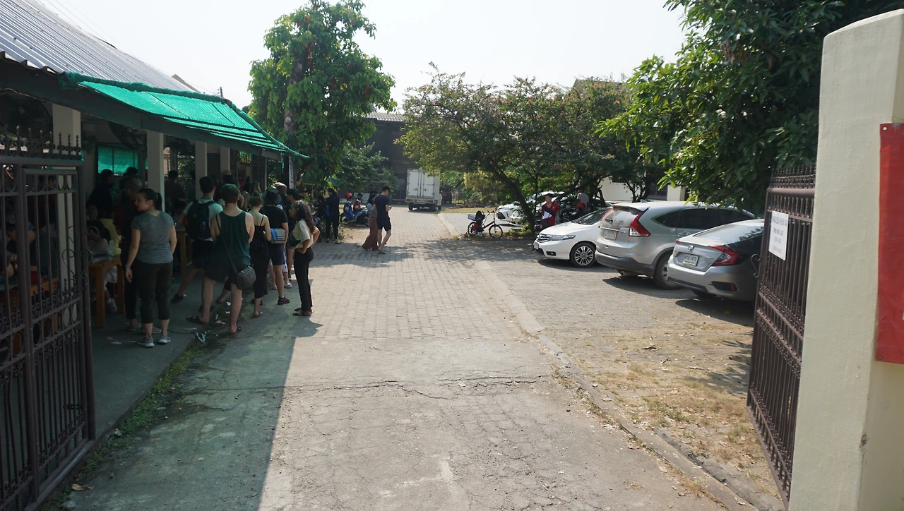 도로변 인도를 걷다 '카오 소이 꾼 야이' 간판을 확인하고 철문 안으로 들어갔다. 나무 기둥에 지붕을 얹은 개방형 식당과 그 앞에 널찍한 마당이 보였다.