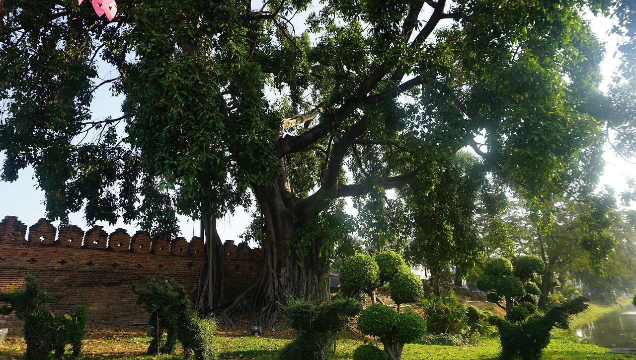 여덟 시가 채 되지 않은 아침에 호텔에서 나온 아빠와 나는 올드시티 남쪽을 향해 걸었다. 지금까지 주로 북문(창푸악 게이트)이나 동문(타페 게이트) 주변을 돌아다녔던 것과는 다른 방향이다. 아침인데도 벌써부터 햇살이 쨍해서 올드시티 남쪽 문인 '치앙마이 게이트'를 통과했을 때 만난 커다란 나무와 해자, 해자에 설치된 분수에서 뿜어지는 물이 다 같이 창창하게 빛나고 있었다. 어제 몬쨈에서 본 일몰이 생각났다. 어찌하여 떠오르는 해와 지는 해가 만들어내는 풍경은 이토록 다를 수 있는 걸까. 애틋하게 저물며 헤어졌다 하룻밤 만에 다시 만난 해는 기운이 넘쳐 보였다. 넘치는 기운을 주체하지 못해 온 땅에 기운을 나눠주고 있는 듯했다.