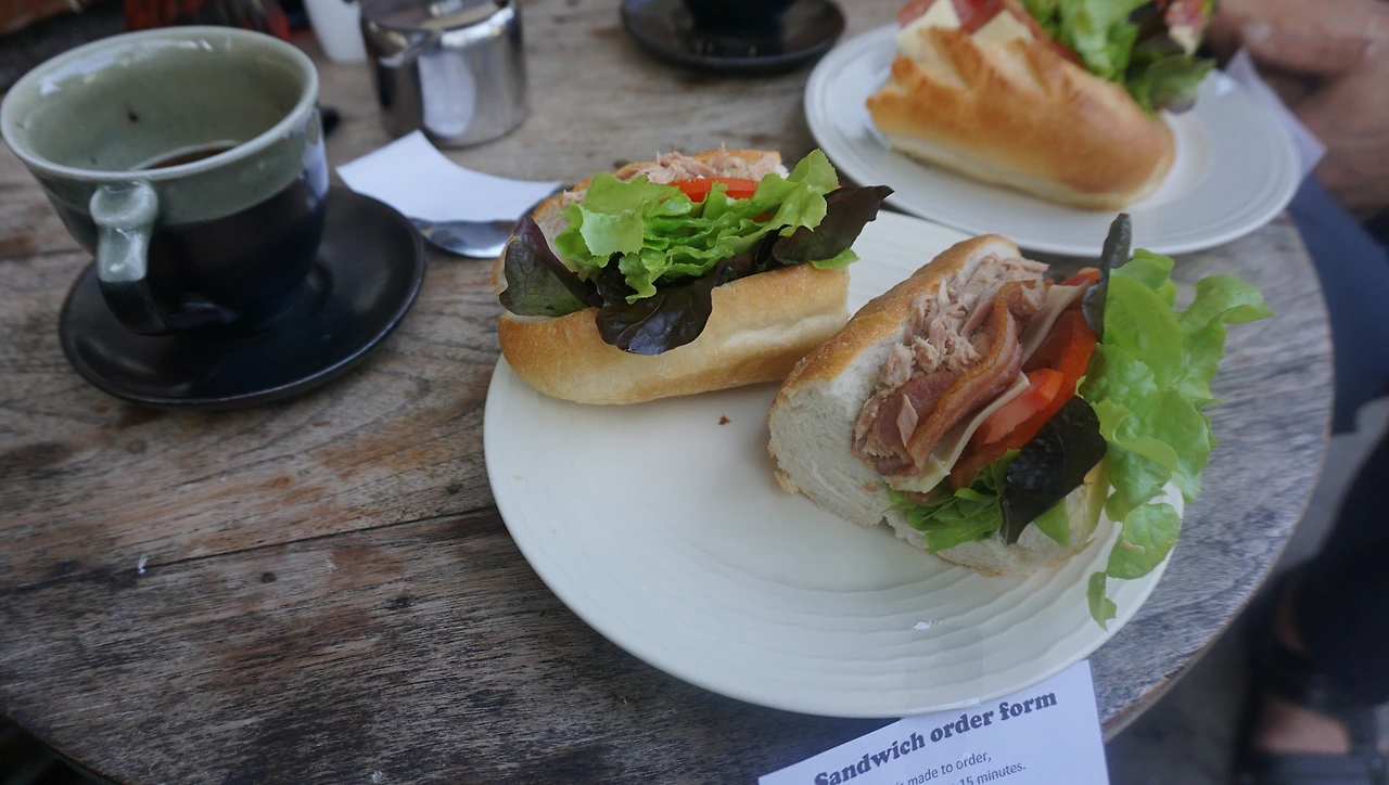 아빠와 나 각자 하나 씩, 비치된 작은 주문 용지를 뽑아 들고 거기에 적혀 있는 빵 종류와 샌드위치 속재료 중에서 마음에 드는 것을 골라 볼펜으로 체크한 뒤 카운터에 건네주면서 커피를 함께 주문했다. 조금만 기다리면 주문 용지에 체크한 그대로 만든 샌드위치가 나올 것이다. 빵이 맛있고 안에 들어가는 속재료도 신선해서 이곳의 '주문형 샌드위치'는 손님들에게 특히 반응이 좋다.