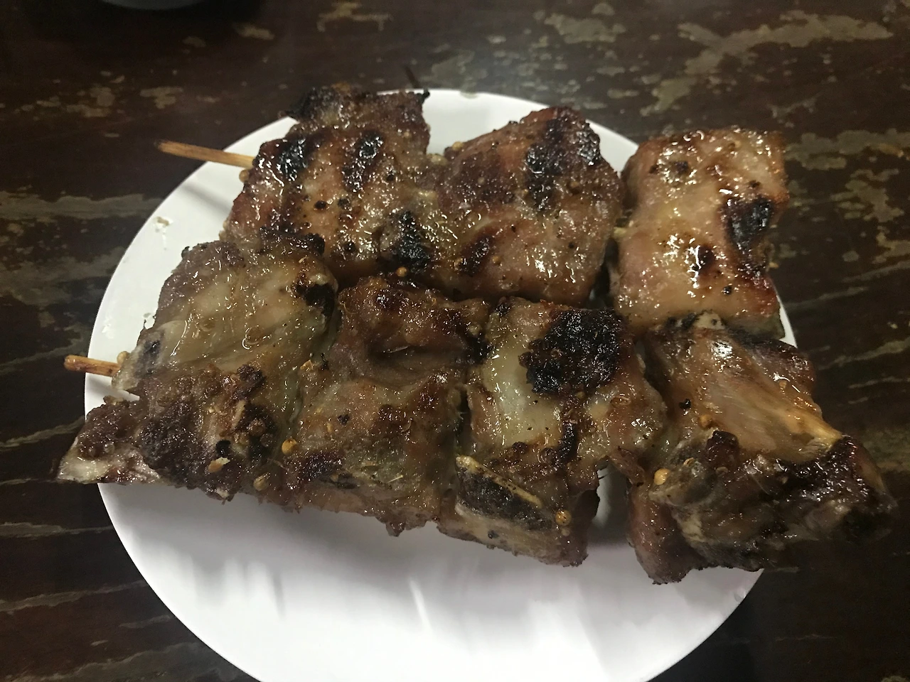 나 : 아빠, (이곳 식당이)여기 사람들한테도 되게 유명해서 여섯 시, 일곱 시 넘어가면 거의 만석이라고 들었거든. 돼지갈비 꼬치 하나에 천 원이래, 25바트. 이왕이면 아빠 입맛에도 맞는 걸로 먹는 게 낫잖아.