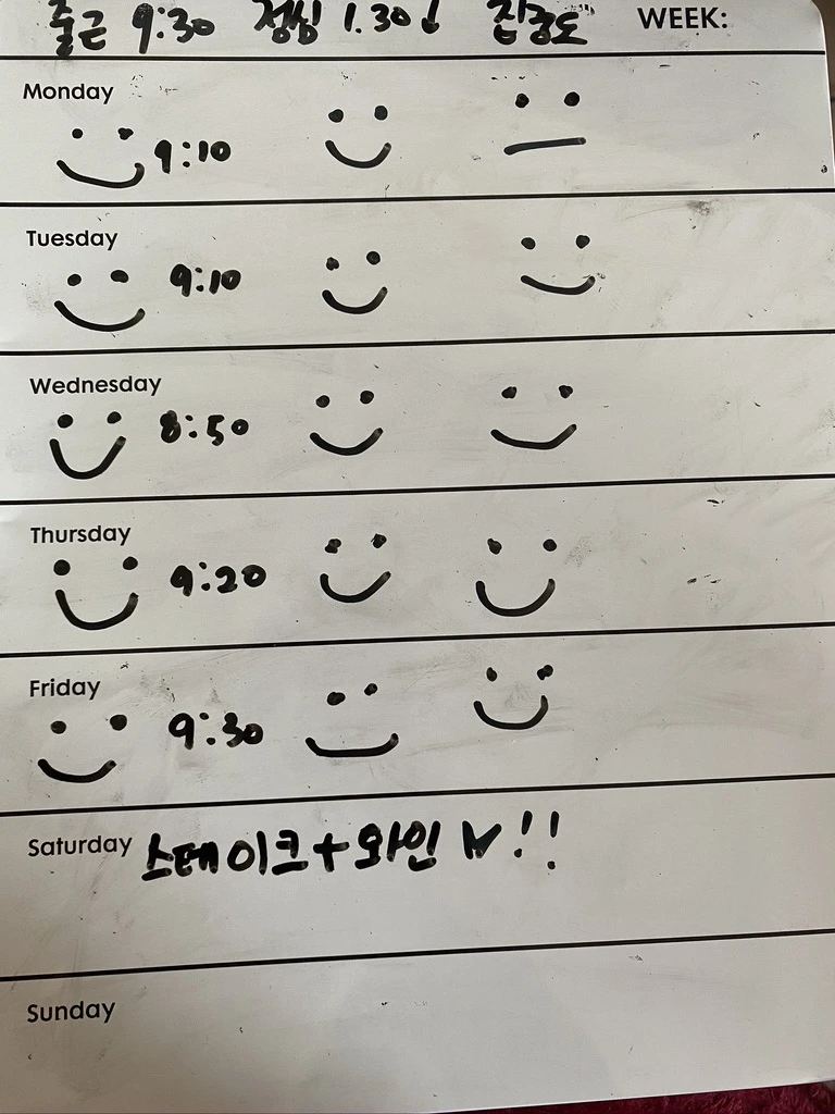 한 주 동안 나의 스티커를 보고, 나를 위한 보상을 해준다. 예: 주말에 비싼 음식 먹기, 사고 싶었던 거 지르기 등등