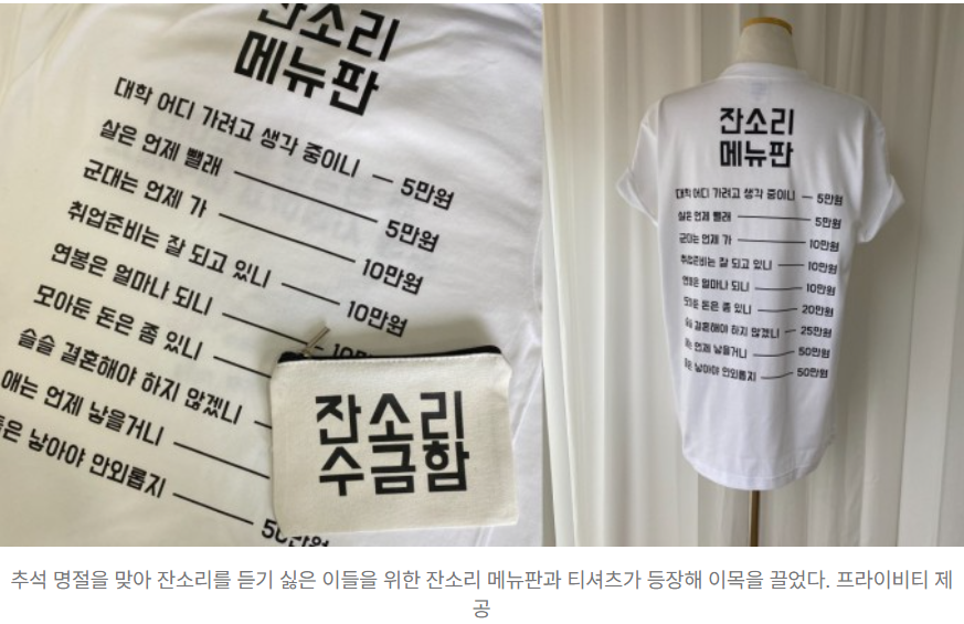 우스갯소리로 ‘명절 잔소리 용돈표’까지 있을 정도다.