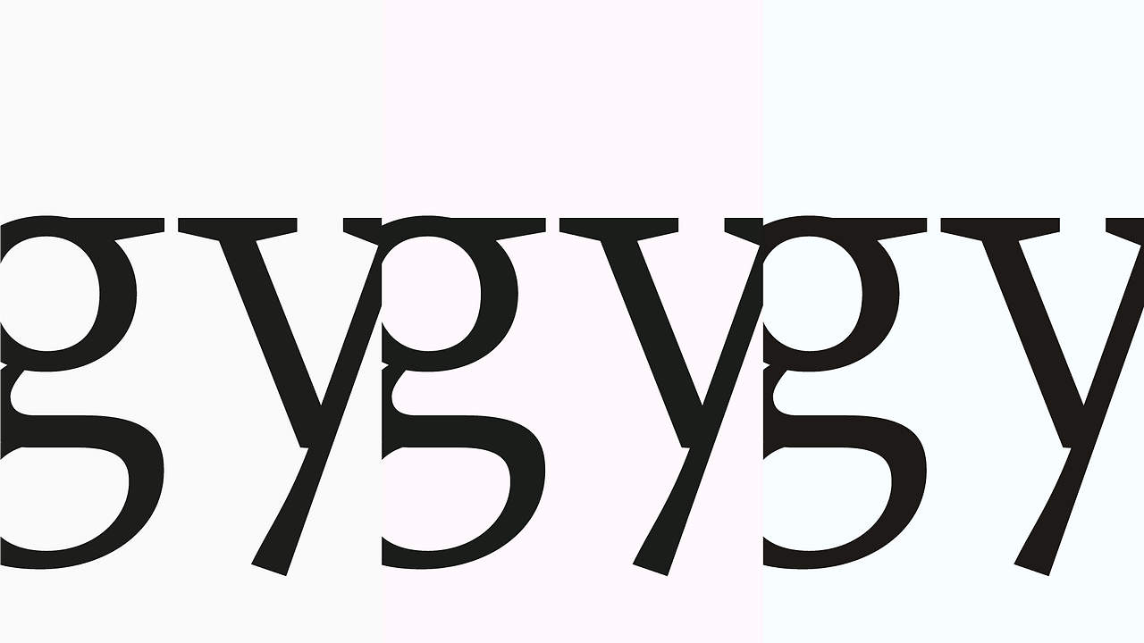 모든 사람의 시력 2.0인 것은 아니듯, 모든 프린터나 스크린의 성능이 완벽한 것은 아니에요. 기술적 제약은 자간에 문제를 야기해요. 특히 작은 글자에서 더 큰 문제가 됩니다. 타이포그래피를 다루는 사람은 해상도가 낮거나, 잉크가 퍼지는 등 좋지 않은 환경에서 글이 읽힐 경우를 염두에 두고 대처해야 해요. 이러한 환경은 글자를 블러 처리함으로써 미리 시험해볼 수 있어요. 한 번 예시를 볼까요?