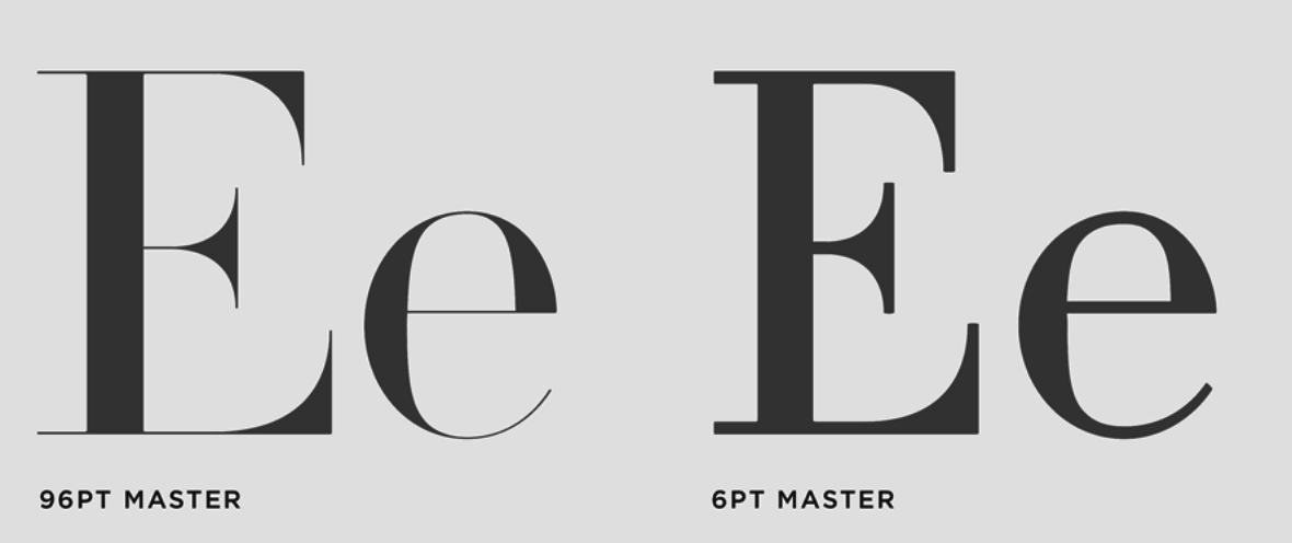 특정한 크기로 사용할 것을 상정하고 폰트를 제작하는 것은 옵티컬 사이징이라는 개념을 뜻해요. 글꼴이 사용되는 환경을 고려해 각 크기에 적합한 형태로 설계된 폰트를 옵티컬 사이즈 폰트라고 합니다.