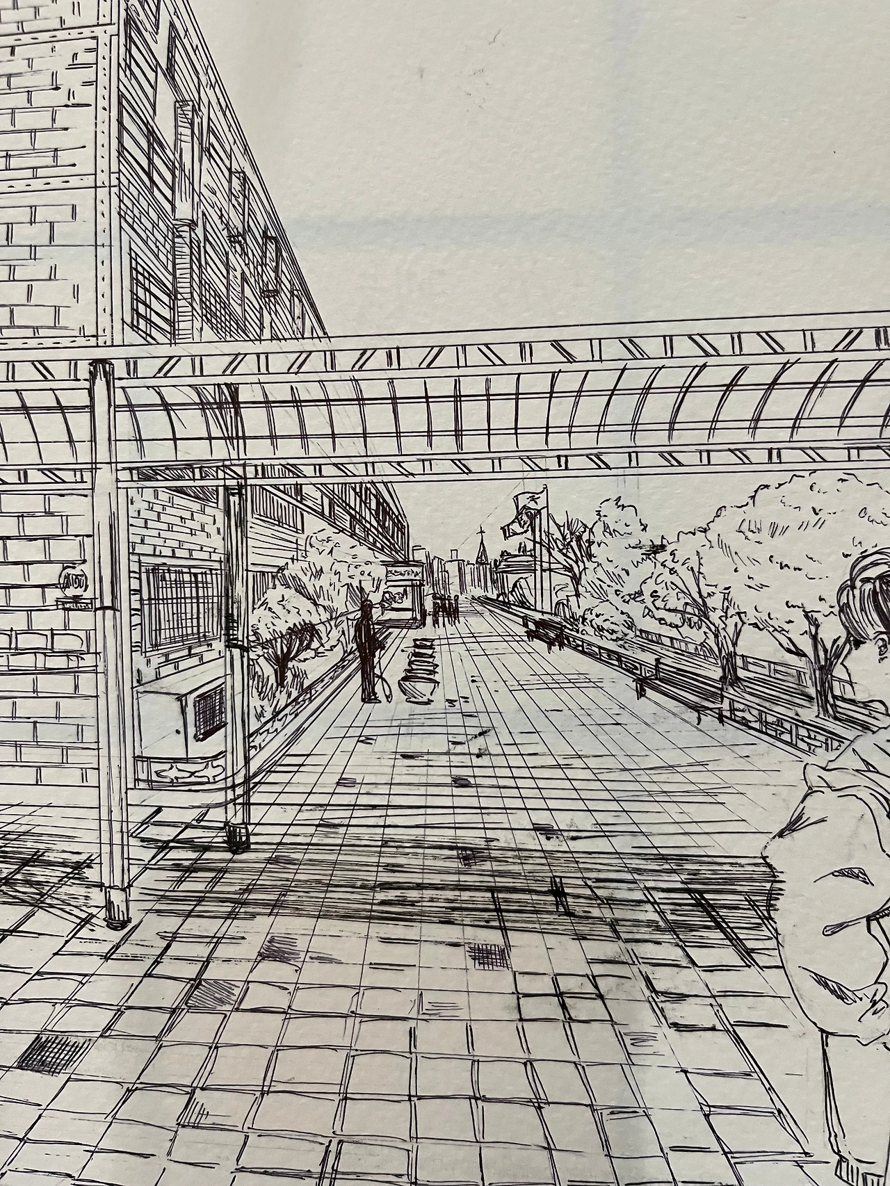 며칠 전 학교 중앙 현관에 학생들이 그린 우리 학교 전경 작품들이 걸려 전시되었습니다.