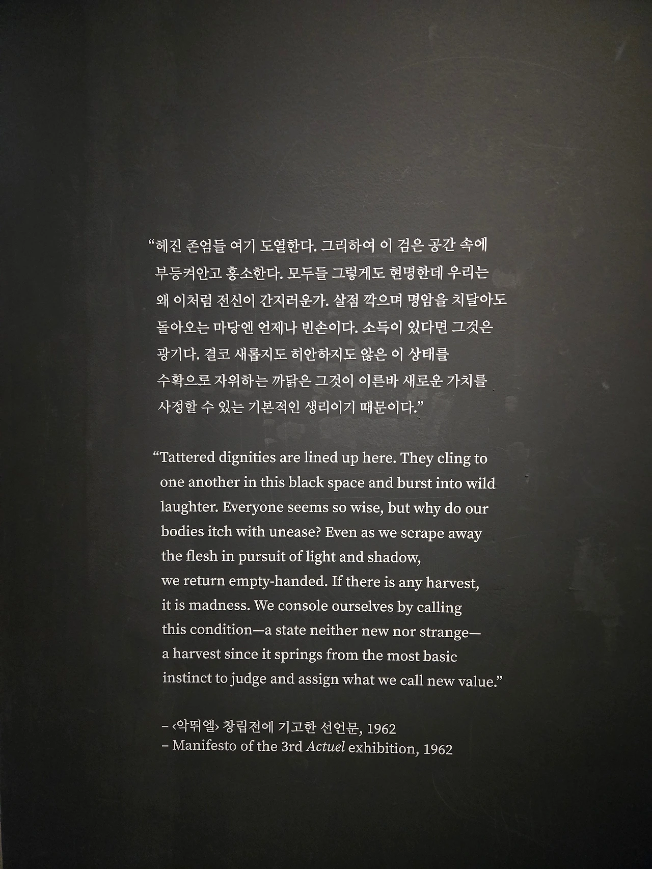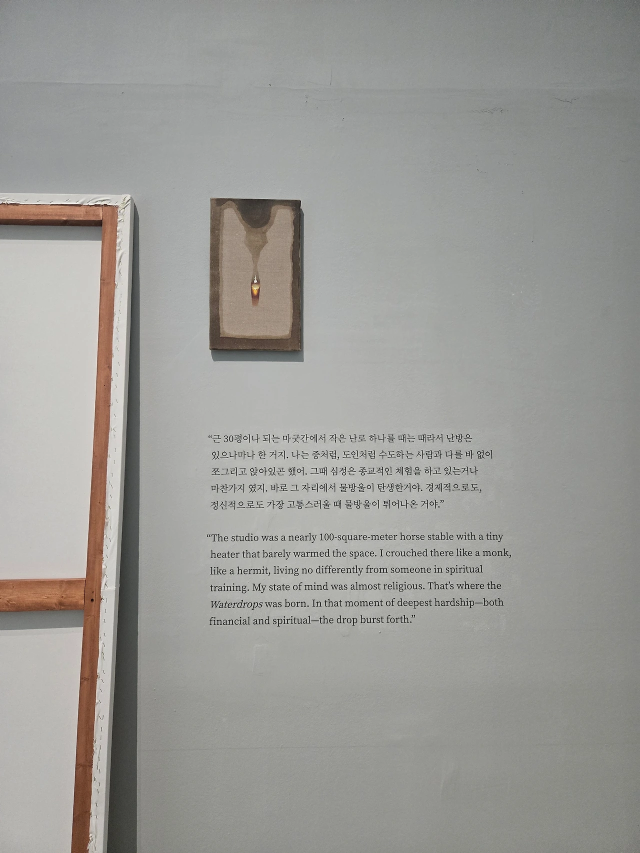 그림 위에 얹어진 물방울들은 말 그대로 정말 경이로웠다. 7 전시실 마지막에 김창열 작가의 인터뷰 영상에서 그는 물방울을 처음 봤던 그 순간의 경이로움을 표현하고 싶었다는 메시지를 남겼다. 내가 물방울 연작을 통해 느낀 경이로움이 과연 그가 느꼈던 그 경이로움과 같을지 궁금하다.
