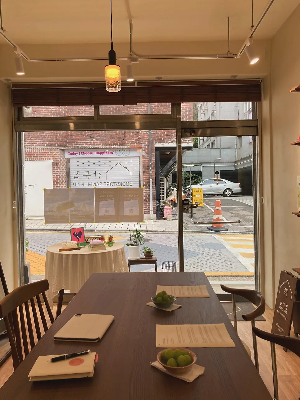 책방의 간판이 먼저 눈에 들어왔다. 간판에서 느껴지는 이 안정감은 무엇일까. 좋아하는 글씨체와 편안한 나무색 때문만은 아니겠지. 잠깐을 머물렀을 뿐인데, 깊이 남은 인상. 시선을 머무르게 하는 그림, 명료한 선들의 집합이 마음을 끌었다. 들어가 보고 싶은 그곳이 내 마음에 자리를 틀었다.