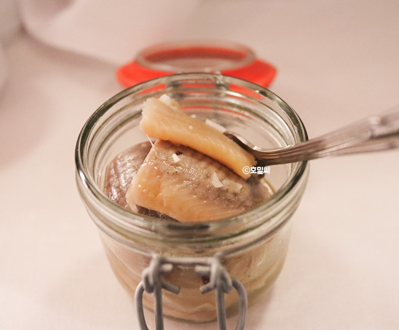북유럽 호텔 조식 뷔페에서는 소금에 절인 청어가 빠지지 않는다. 치즈나 빵, 과일, 햄, 샐러드 등 호텔에서 흔히 볼 수 있는 평범한 조식 메뉴들 사이에 느닷없이 눈앞에 청어 절임이 훅 들어오는 일은 아무래도 익숙해지지 않았다. 평소 홍어를 즐겨 먹는다면 청어 절임이 의외로 맛있을지도 모르겠다. 나는 두어 번 먹어보려고 노력했지만 한 덩이를 끝까지 다 먹지 못했다. 시큼한 맛은 그럭저럭 견딜 만했지만 내 입맛엔 좀 달았다.