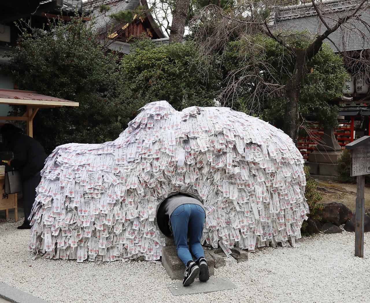영화 <브루스 올마이티>를 보면, 전 세계 사람들이 실시간으로 비는 엄청난 소원들이 컴퓨터 화면에 쏟아져 나오는 걸 보고 신이 된 짐 캐리가 정신줄을 놓는 장면이 나온다. 그런데 교토에 있는 야스이콘피라궁에 가면 이 장면이 현실에서 재현된다는 사실. 이곳은 악연을 끓어주는 신사로 유명한 곳인데, 종이에 소원을 적어서 돌에 붙인 다음 구멍을 통과했다가 되돌아 나오면 악연은 끊어지고 좋은 인연이 찾아온다고 전해진다. 한 해가 지나면 쌓인 종이는 태운다고 들었지만, 언제 가더라도 항상 종이가 수북하게 덮여 있어서 실제 돌이 어떻게 생겼는지는 본 적이 없다. 교토에 가면 한 번쯤 가보길 권한다.