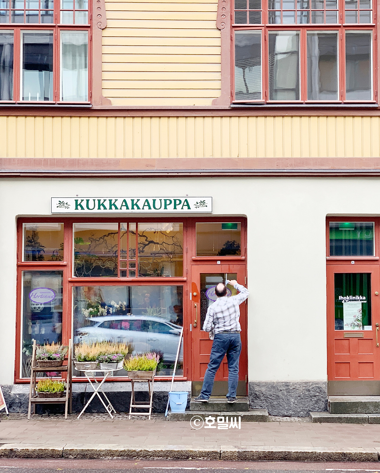 무지무지 심심한 핀란드 거리, 내세울 것 하나 없는 단순한 가게 간판들은 단지 인구밀도가 낮고 상권이 덜 발달했기 때문만이 아닌 것이다. 사실 꽃가게를 꽃가게라 부르지 않으면 뭐라고 부르겠는가. 다른 가게도 꽃가게라고 한들 무슨 상관이람. 그 가게 주인도 나처럼 꽃을 파나보지. 하루하루 별 볼 일은 없어도 별일 없이 잘 사는 핀란드 사람들을 생각하면 장기하의 노래가 떠오른다.