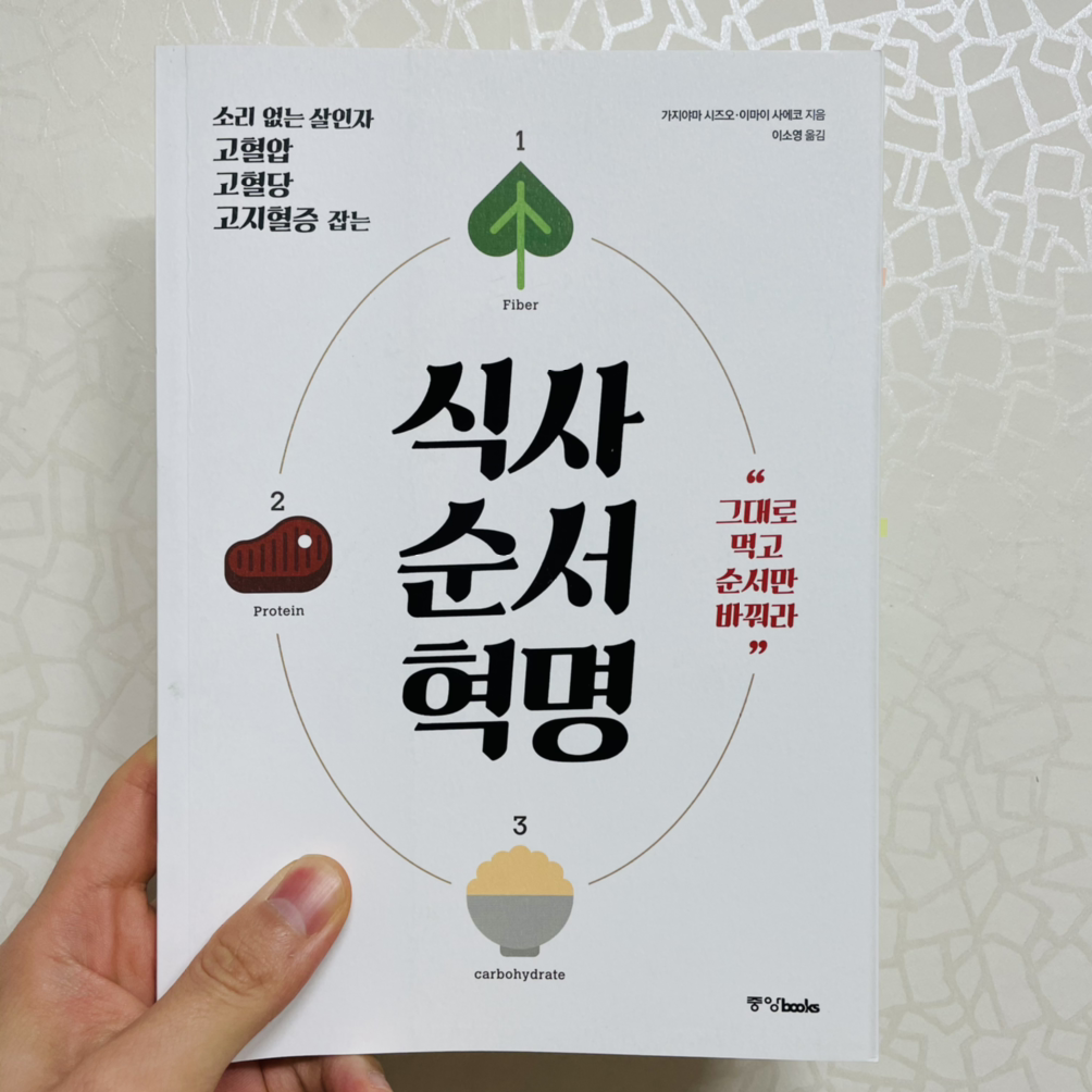 이렇게 한참 식사패턴을 정립해가던 중에, <식사 순서 혁명>이라는 책을 발견해서 읽어봤어요. 저자는 일본 의사예요.